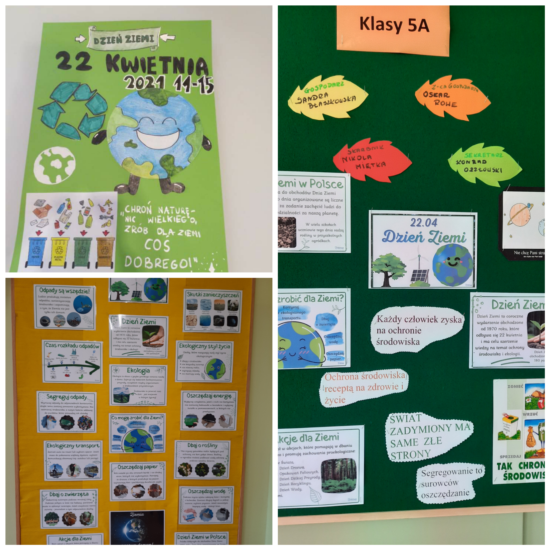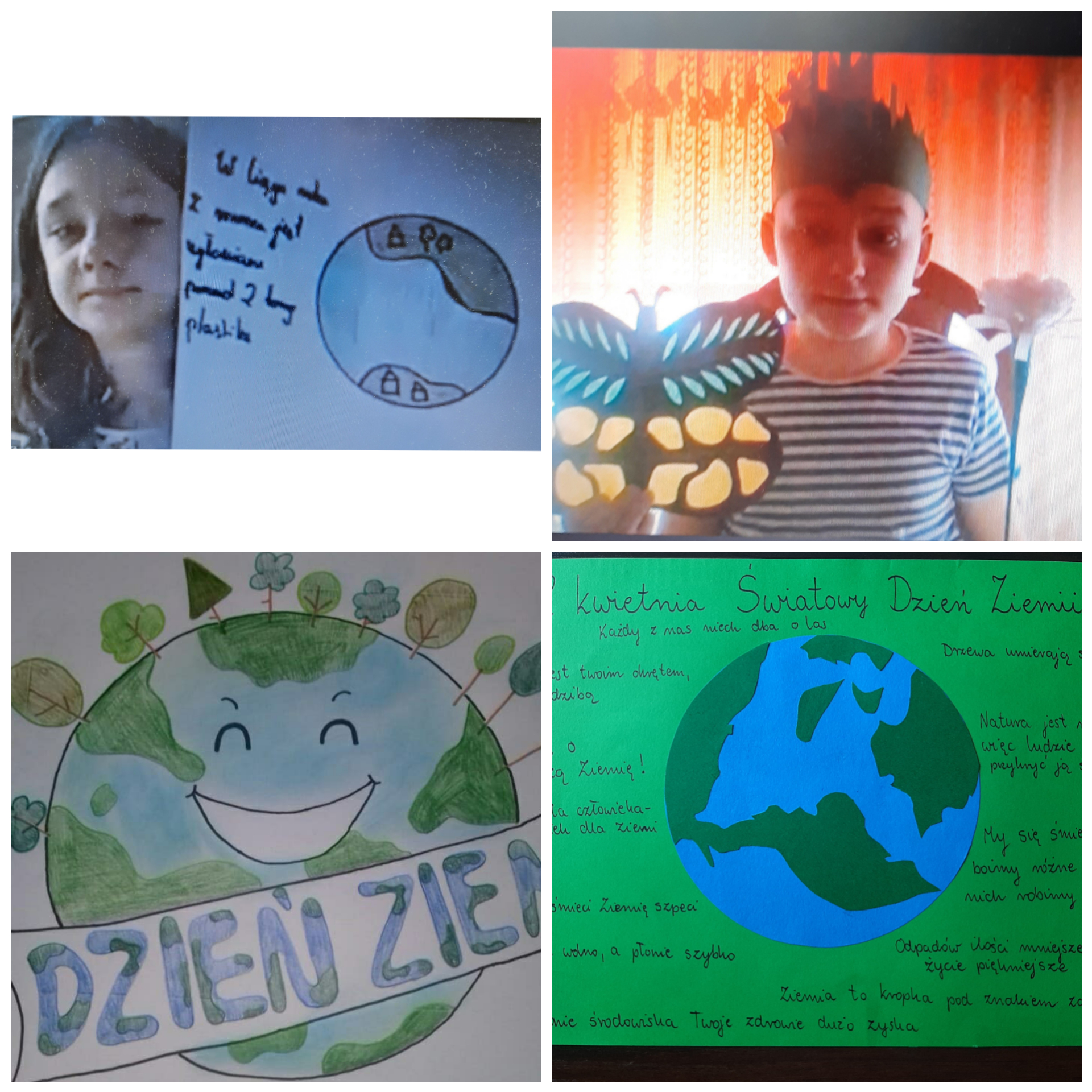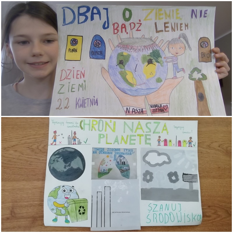 Tegoroczne święto Dzień Ziemi odbyło się 22 kwietnia pod hasłem ,,Przywróć naszą Ziemię.” Jego nadrzędnym celem jest promowanie postaw ekologicznych w społeczeństwie i zachęcenie do prowadzenia trybu życia, który jest bardziej przyjazny dla naszej planety. Pomimo pandemii, uczniowie naszej szkoły pamiętali o tym, jak ważne jest dbanie o naszą planetę. Podczas lekcji zdalnych poruszono zagadnienia dotyczące ochrony środowiska , działania jakie każdy z nas może przyczynić się do zmian w naszych codziennych przyzwyczajeniach np. segregacja śmieci, Dzień bez samochodu, oszczędzanie wody, ograniczenie zużycia plastiku. Mamy tylko jedną planetę i każdy z nas musi troszczyć się o nią codziennie. Uczniowie wykonywali plakaty, pisali listy w imieniu przyrody skierowane do ludzi, sprzątali miejsca wokół swoich posesji i miejsca zabaw z zachowaniem reżimu sanitarnego.