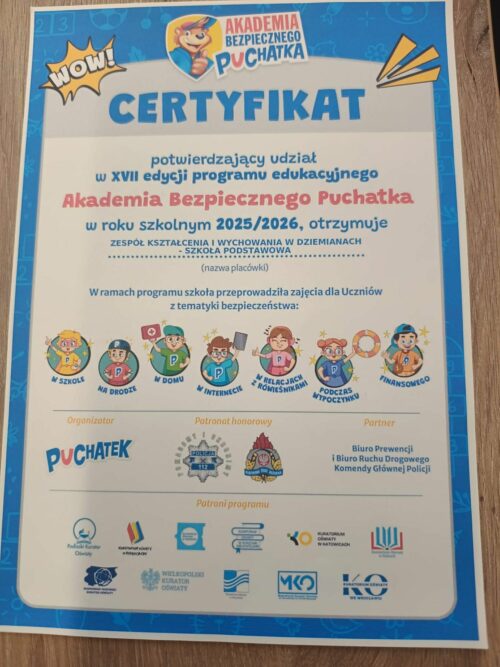 W bieżącym roku szkolnym 56 uczniów klas pierwszych z naszej szkoły realizowało ogólnopolski program edukacyjny Akademia Bezpiecznego Puchatka.
