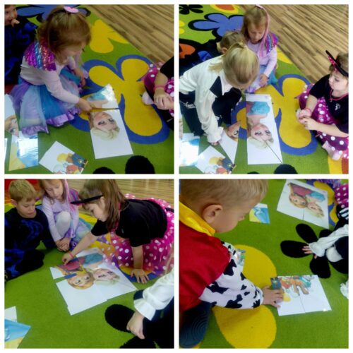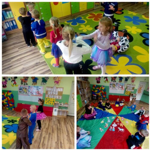 Na początku dnia odbyła się prezentacja strojów – każde dziecko miało okazję zaprezentować swój kostium i opowiedzieć, z jakiej bajki pochodzi jego bohater. Następnie wspólnie bawiliśmy się przy muzyce z popularnych bajek, rozwiązywaliśmy zagadki i quizy dotyczące bajkowych historii oraz uczestniczyliśmy w bajkowych konkurencjach i zabawach ruchowych.