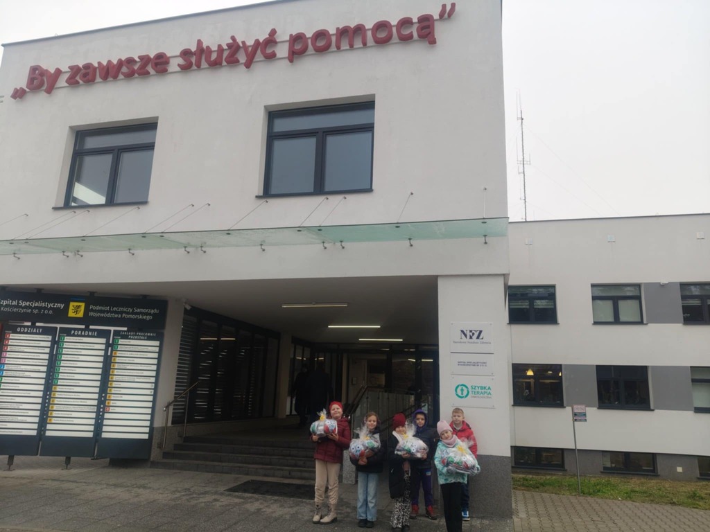 Uczniowie klas drugich po raz kolejny udowodnili, że dobro potrafi rozświetlać codzienność. W ramach akcji „Dzieci – dzieciom” przygotowali wyjątkowe paczki dla dzieci przebywających w kościerskim szpitalu. W upominkach znalazły się własnoręcznie wykonane sówki, rysunki oraz kartki z życzeniami z okazji zbliżającego się Dnia Życzliwości i Pozdrowień. Drugoklasiści podarowali także kolorowanki, kredki, pisaki oraz inne artykuły papiernicze, aby dodać otuchy i wywołać uśmiech na twarzach małych pacjentów.