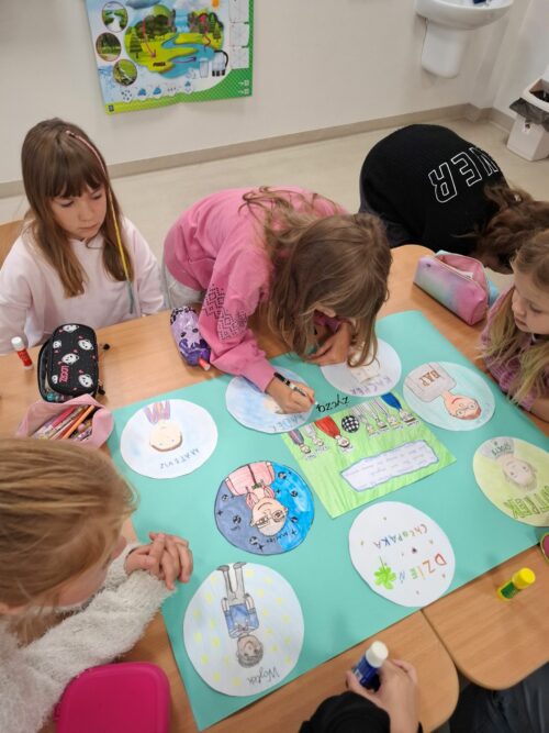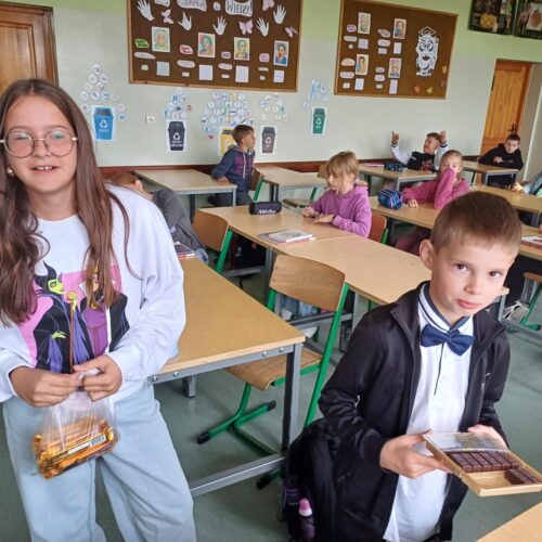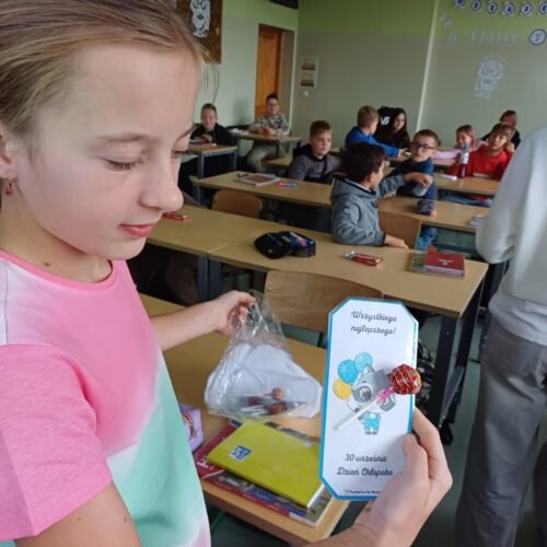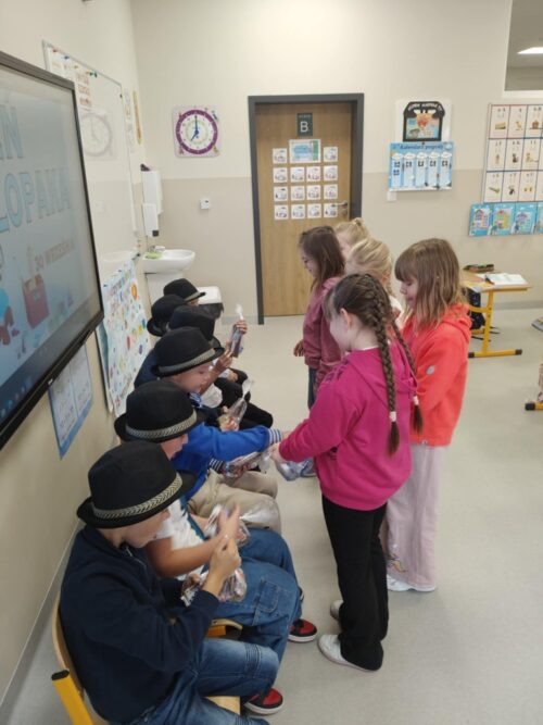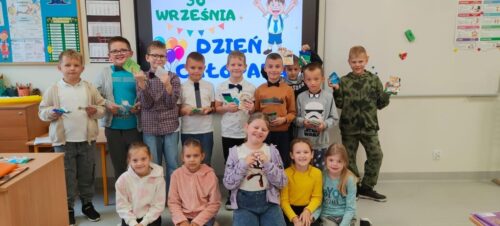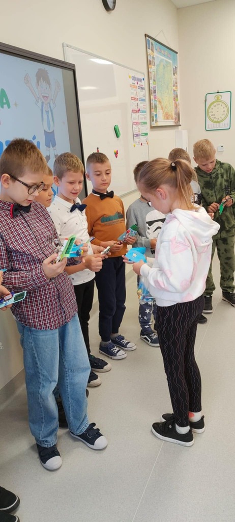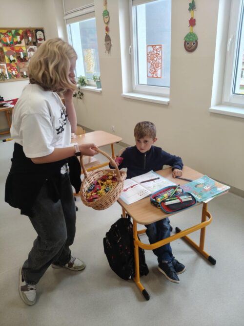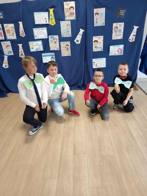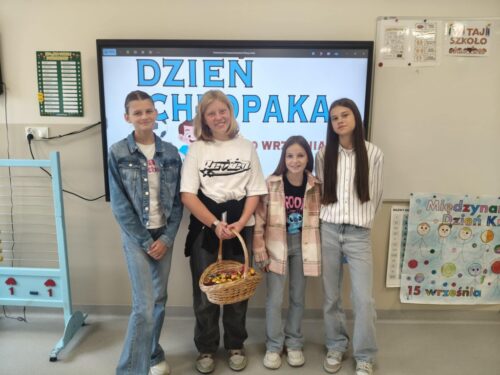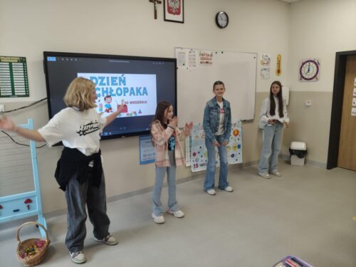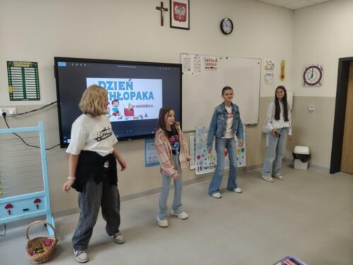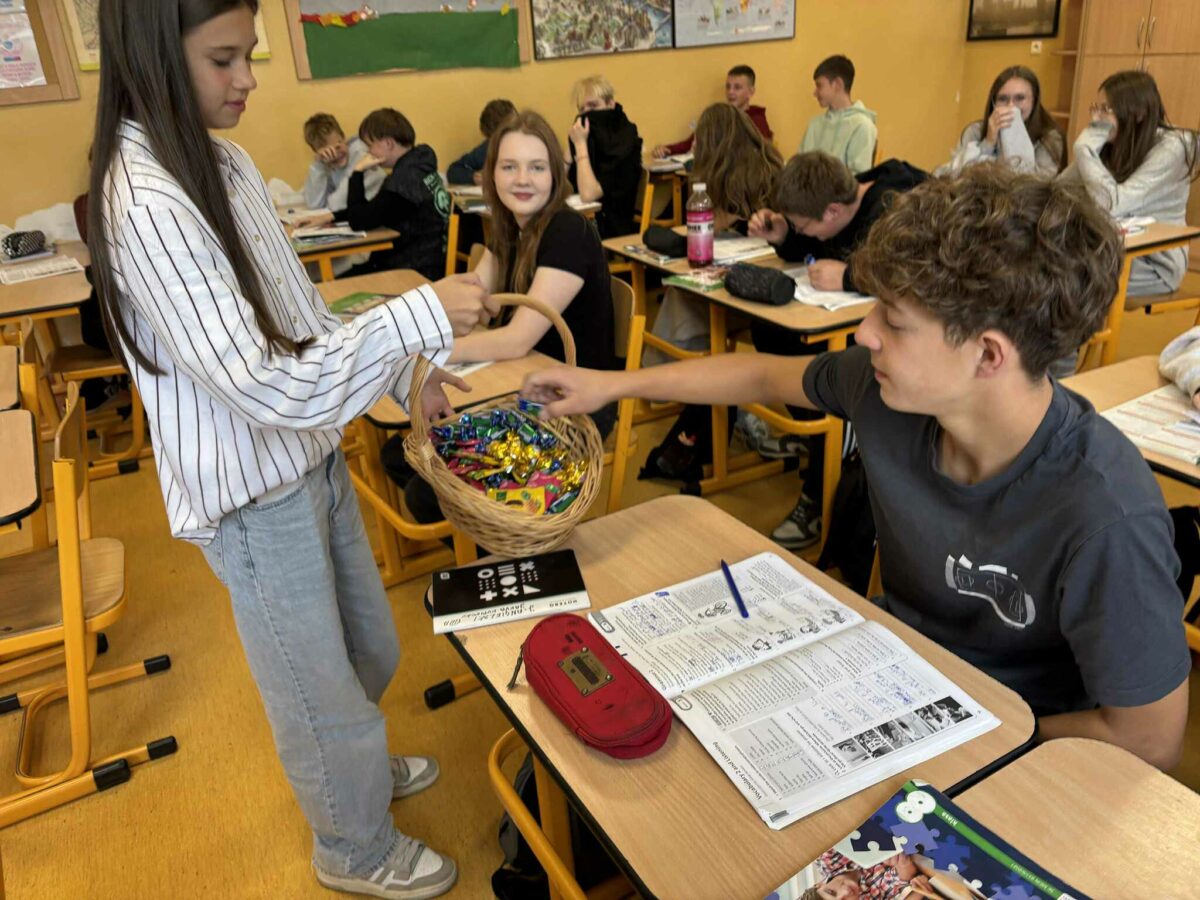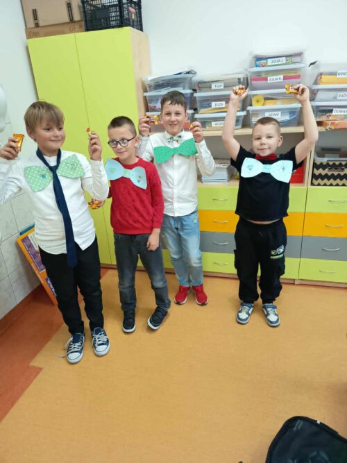 W tym roku Dzień Chłopaka obchodziliśmy radośnie i wyjątkowo. Dziewczynki przygotowały dla swoich kolegów drobne upominki, a dziewczyny z Samorządu Uczniowskiego częstowały wszystkich chłopców cukierkami. Samorząd zaprosił również chłopców do udziału w akcji „Muszka lub krawat”, dzięki czemu szkolne korytarze wypełniła elegancja i dobry humor.