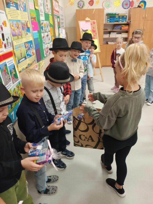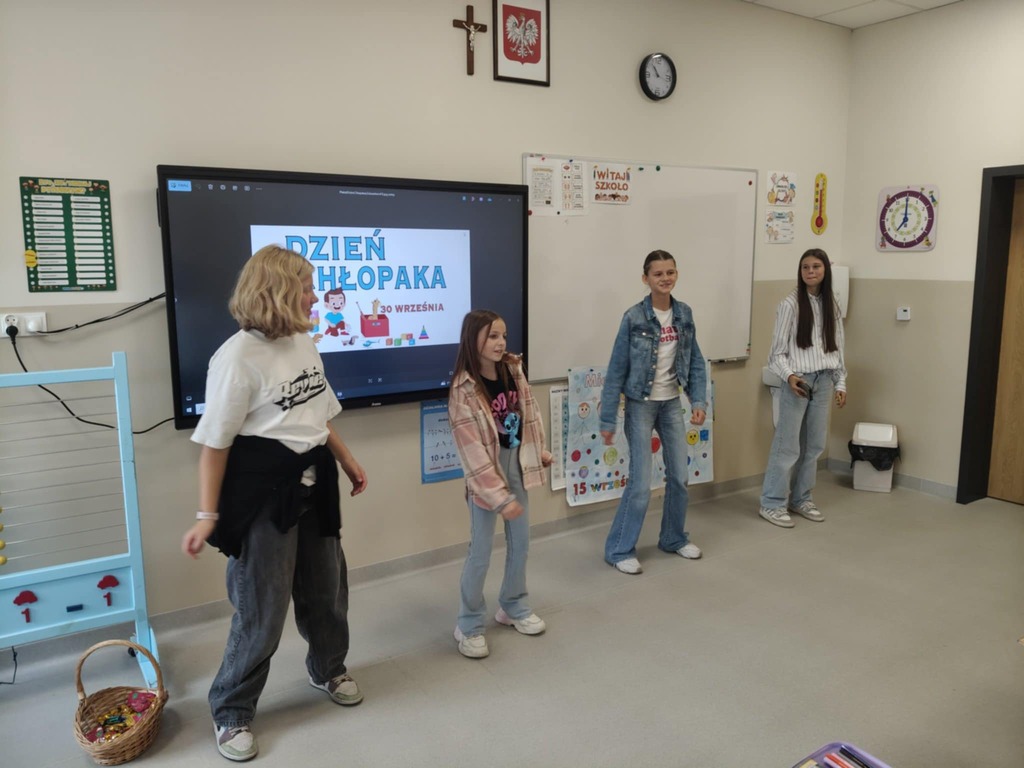 Szczególną atrakcją był występ Leny z klasy 3 A, która zaśpiewała dla chłopców piosenkę pt. „Dżentelmeni” i zaprezentowała przygotowany specjalnie na tę okazję układ choreograficzny. Zwieńczeniem obchodów Dnia Chłopaka było grupowe zdjęcie wszystkich chłopców – od zerówki, aż po klasy ósme, które będzie piękną pamiątką tego dnia.