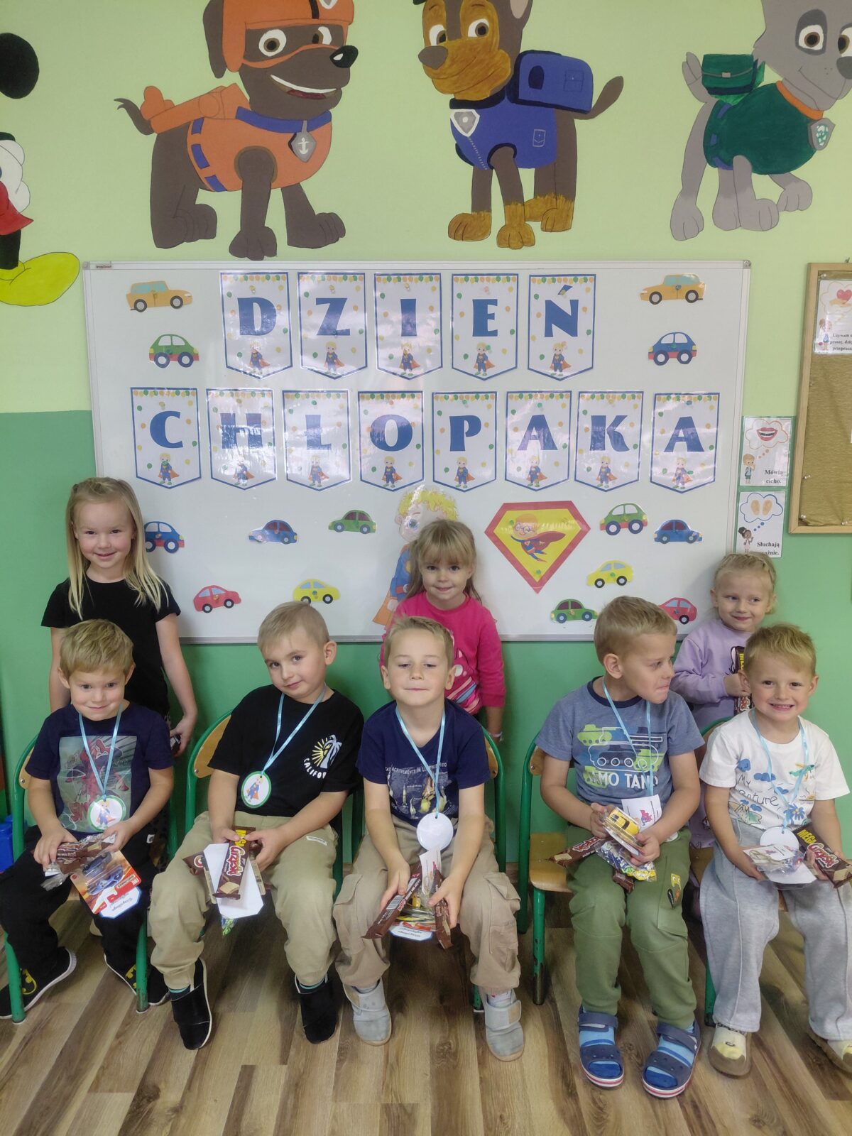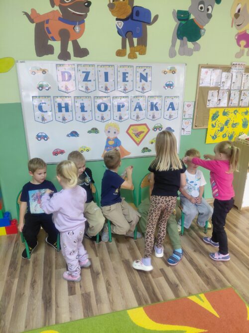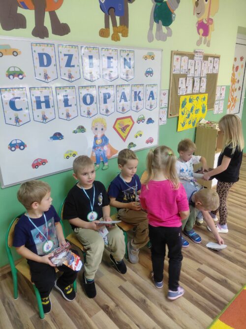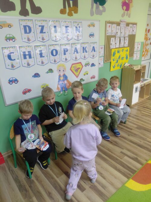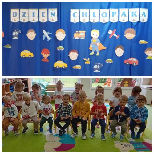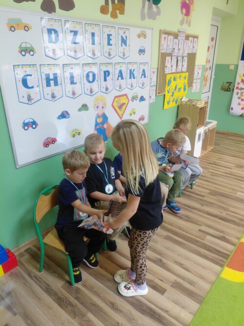 30 września obchodziliśmy w naszym przedszkolu Dzień Chłopaka. To święto podczas którego dziewczynki przygotowały niespodzianki, życzenia i drobne prezenty dla swoich kolegów. Odbyly się również specjalne zabawy, konkursy i aktywności, które mialy na celu integrację grupy, rozwijanie więzi i budowanie poczucia wartości u chłopców. Był to dzień pełen radości, wspólnej zabawy i podkreślenia znaczenia koleżeństwa i wzajemnego szacunku.