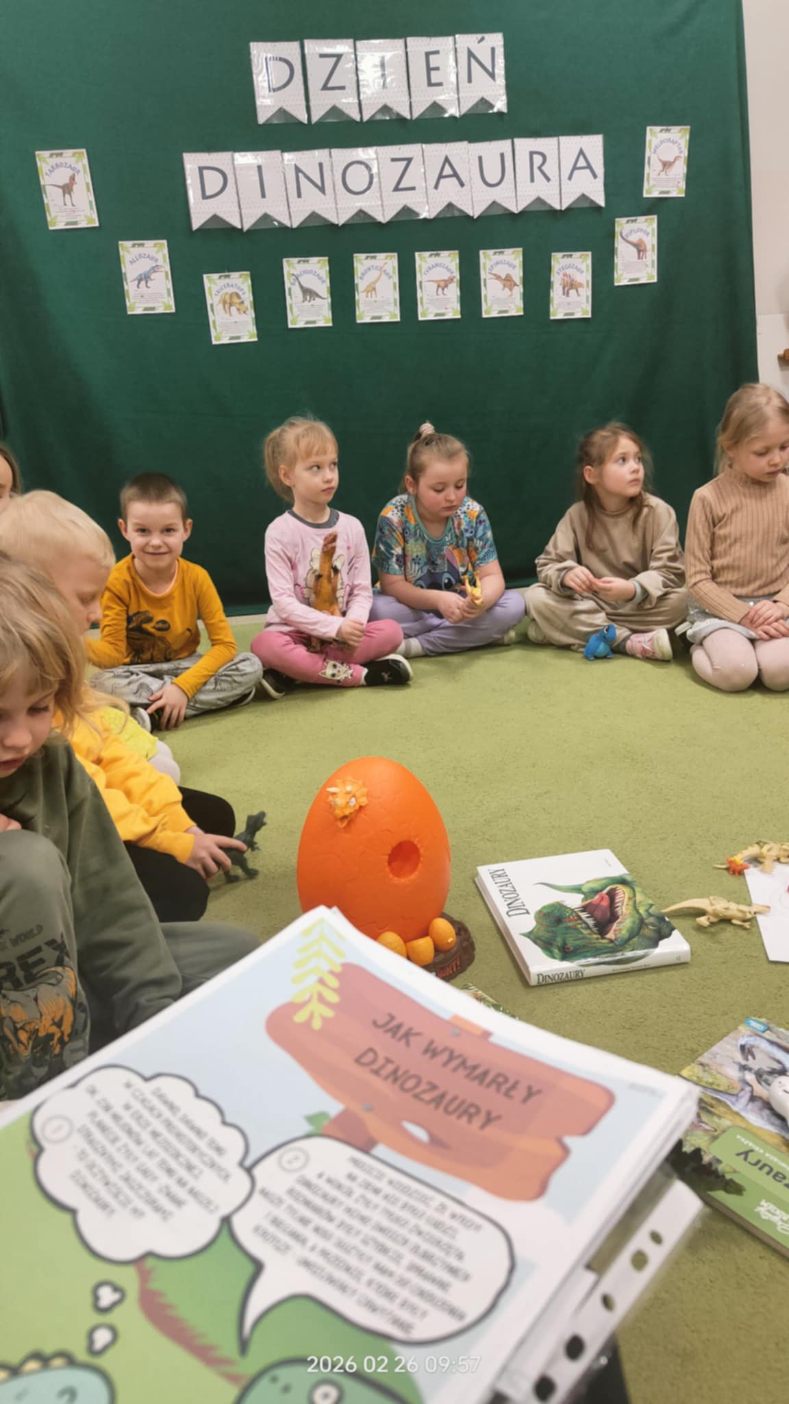 Dzieci poszerzały swoją wiedzę na temat dinozaurów – dowiedziały się, jak wyglądało życie miliony lat temu, czym żywiły się te niezwykłe stworzenia oraz dlaczego wyginęły. Poznały także zawody związane z badaniem przeszłości, takie jak paleontolog czy archeolog. Z dużym zainteresowaniem słuchały o tym, jak odkrywa się skamieniałości i jak wygląda praca badaczy dawnych dziejów.