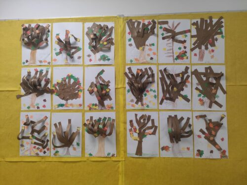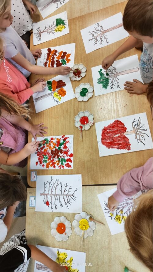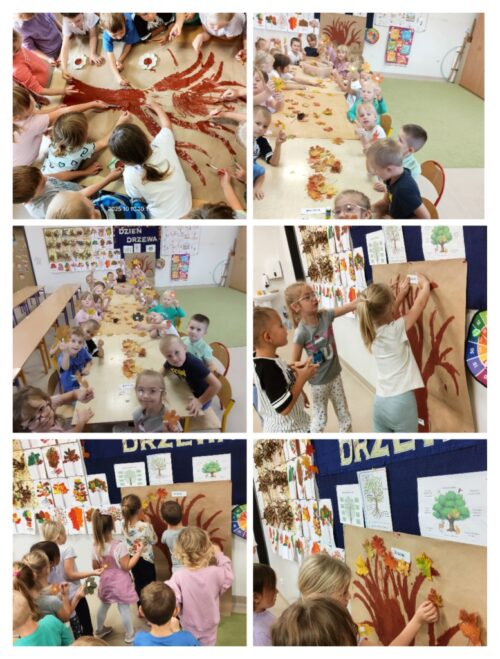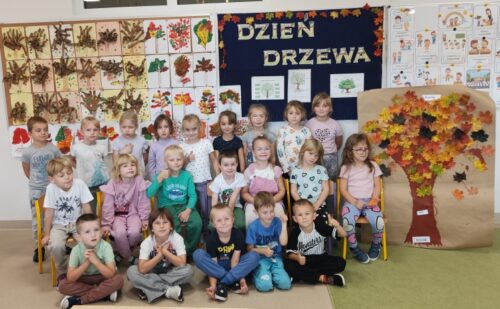10 października dzieci z zerówek obchodziły Dzień Drzewa – wyjątkowe święto, które przypomina, jak ważną rolę w przyrodzie odgrywają drzewa i dlaczego warto o nie dbać. Dzieci uczestniczyły w wielu ciekawych zajęciach i zabawach. Na początek obejrzały prezentację multimedialną o drzewach, dzięki której dowiedziały się, jakie znaczenie mają one dla ludzi, zwierząt i środowiska. Następnie rozwiązywały zagadki przyrodnicze, wykazując się świetną wiedzą i spostrzegawczością. W dalszej części dnia mali badacze przyrody wyruszyli na spacer obserwacyjny, podczas którego uczyli się rozpoznawać drzewa po liściach i korze. Nie zabrakło również twórczych działań w salach. Powstał wielkoformatowy plakat oraz mniejsze, indywidualne prace wykonane zarówno za pomocą farb i pędzli jak i kolorowych papierów, nożyczek i kleju. Dzieci z zerówek kolejny raz udowodniły, że nauka o przyrodzie może być niezwykle ciekawa!