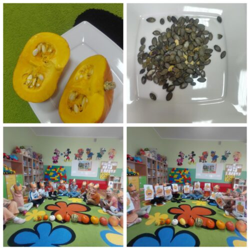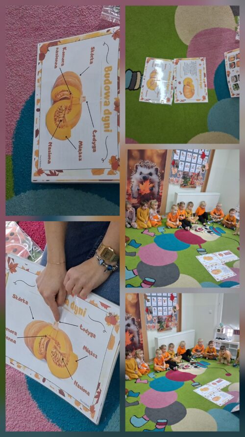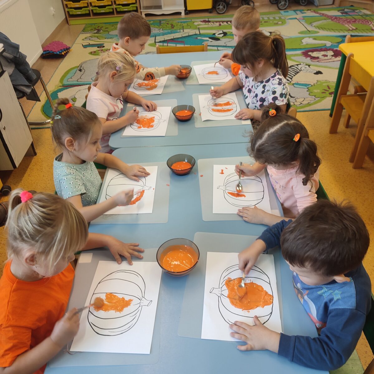 Podczas tego dnia dzieci miały okazję poznać różne rodzaje dyni, dowiedzieć się, skąd się bierze i jakie ma zastosowanie. Przedszkolaki chętnie uczestniczyły w wszystkich atrakcjach tego dnia. Nie zabrakło także zabaw ruchowych związanych z dynią oraz prac plastyczny.