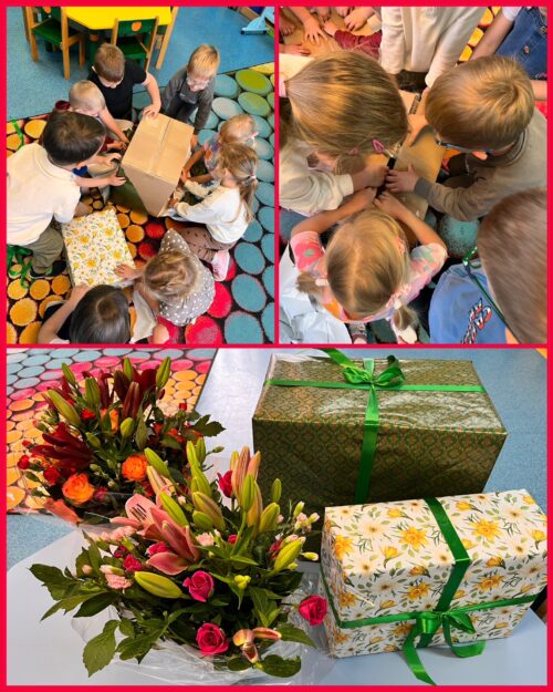 Dzieci z ogromną radością powitały nowe zabawki, które tego dnia pojawiły się w salach – zabawa była jeszcze bardziej wyjątkowa niż zwykle! Z kolei nasze Panie otrzymały piękne kwiaty jako wyraz wdzięczności i uznania za ich codzienną pracę, troskę i zaangażowanie.