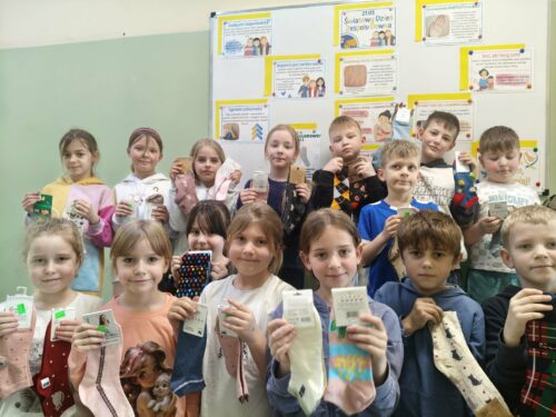 W wydarzeniu aktywnie uczestniczyli członkowie Samorządu Uczniowskiego oraz drugoklasiści, którzy dodatkowo zorganizowali zbiórkę kolorowych skarpetek. Zebrane skarpetki zostały przekazane podopiecznym Środowiskowego Domu Samopomocy w Trzebuniu sprawiając im ogromną radość.