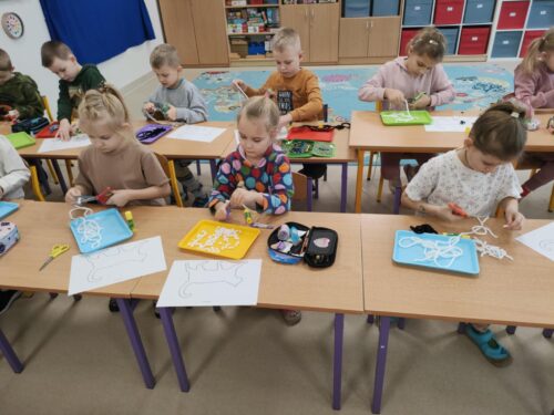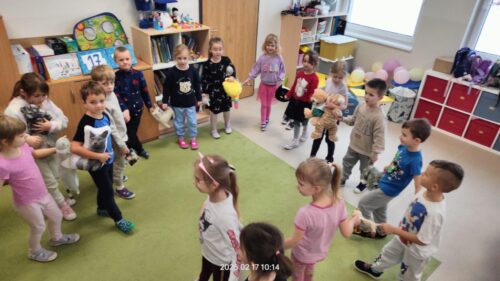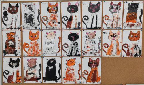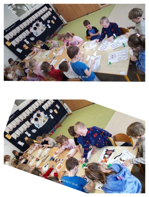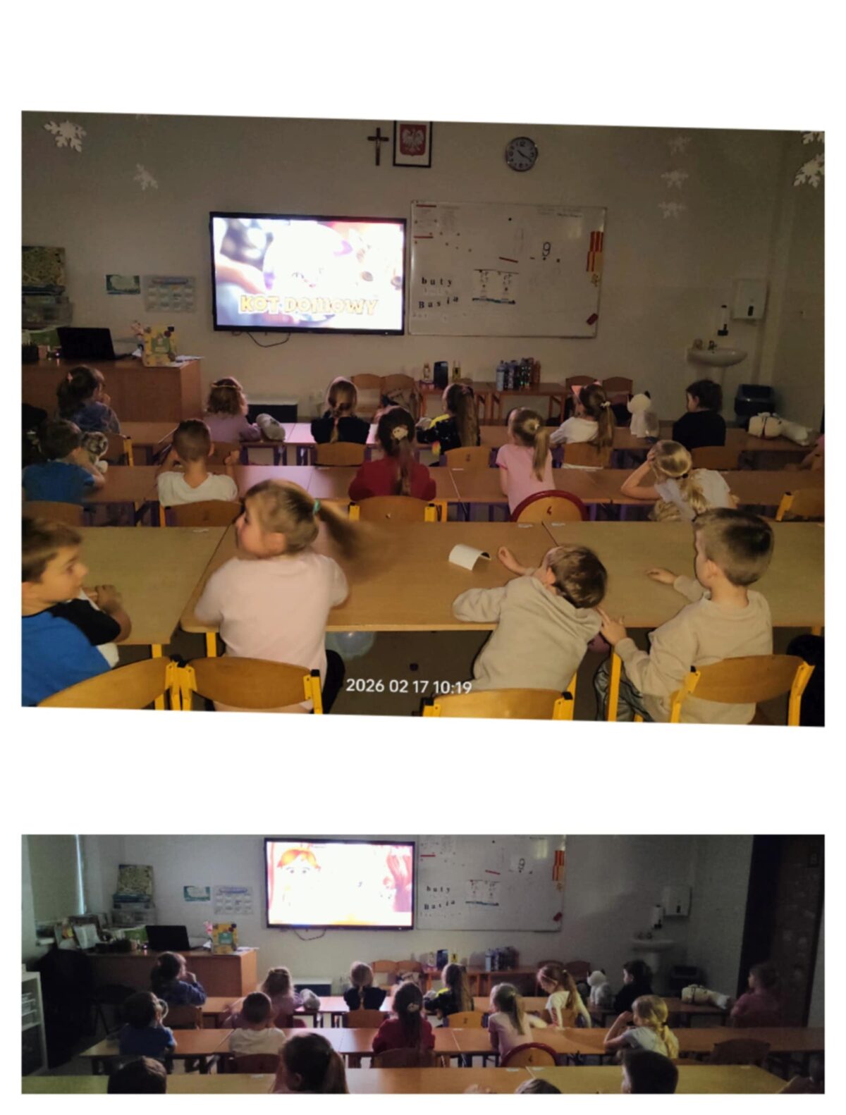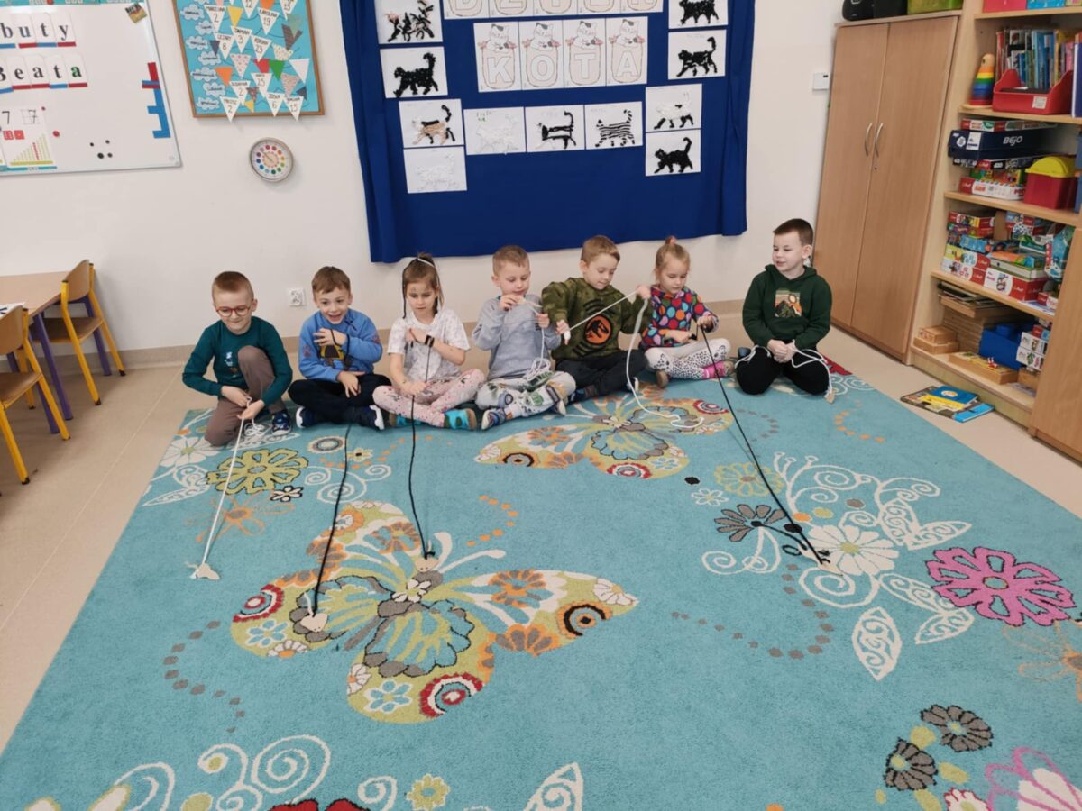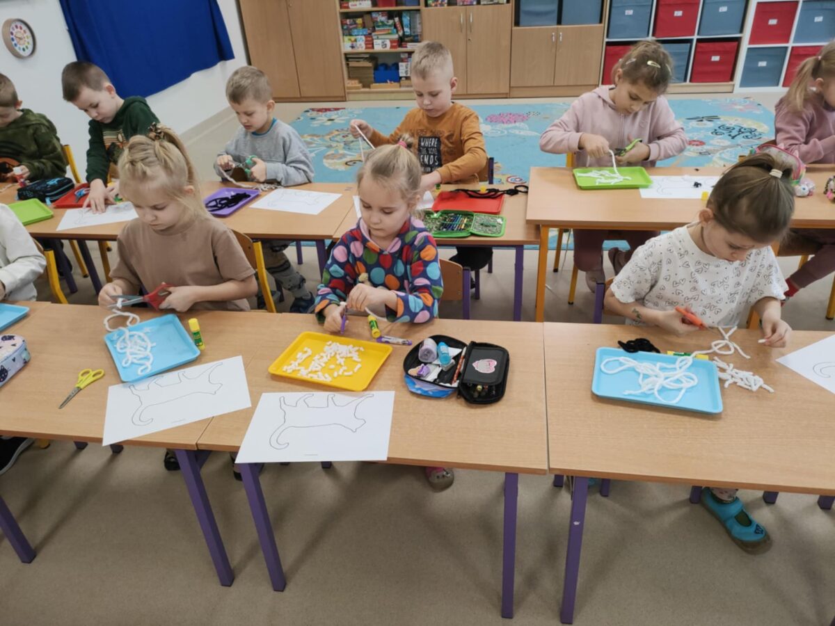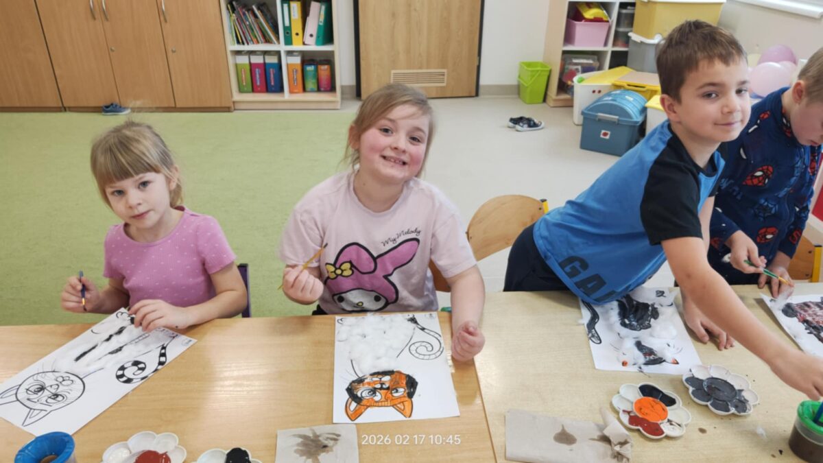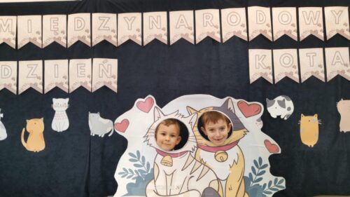 17 lutego w zerówkach obchodziliśmy Dzień Kota. Już od rana sala wypełniła się „kocią” atmosferą. Dzieci z entuzjazmem opowiadały o swoich domowych pupilach i dzieliły się kocimi ciekawostkami. Podczas zajęć wspólnie poszerzały wiedzę o kotach — dowiedziały się, jak koty się poruszają, co lubią jeść i jak się komunikują. Pani czytała książeczki o kotach, a dzieci słuchały z zaciekawieniem, śledząc przygody bohaterów o miękkich łapkach i długich ogonach. Nie zabrakło także działań plastycznych. Z włóczki czy waty powstawały niezwykłe ilustracje kotów — puszyste, kolorowe, czasem zabawne, a czasem bardzo dostojne. Każda praca była inna, tak jak różne są koty. W ciągu dnia pojawiły się również zabawy rozwijające motorykę małą. Dzieci konstruowały koty z klocków, a także ćwiczyły zręczność i precyzję podczas „gonienia myszki” – zwijania włóczki, co wywoływało mnóstwo śmiechu i emocji. Małe paluszki miały okazję do aktywnej pracy, a wyobraźnia do kocich harców.