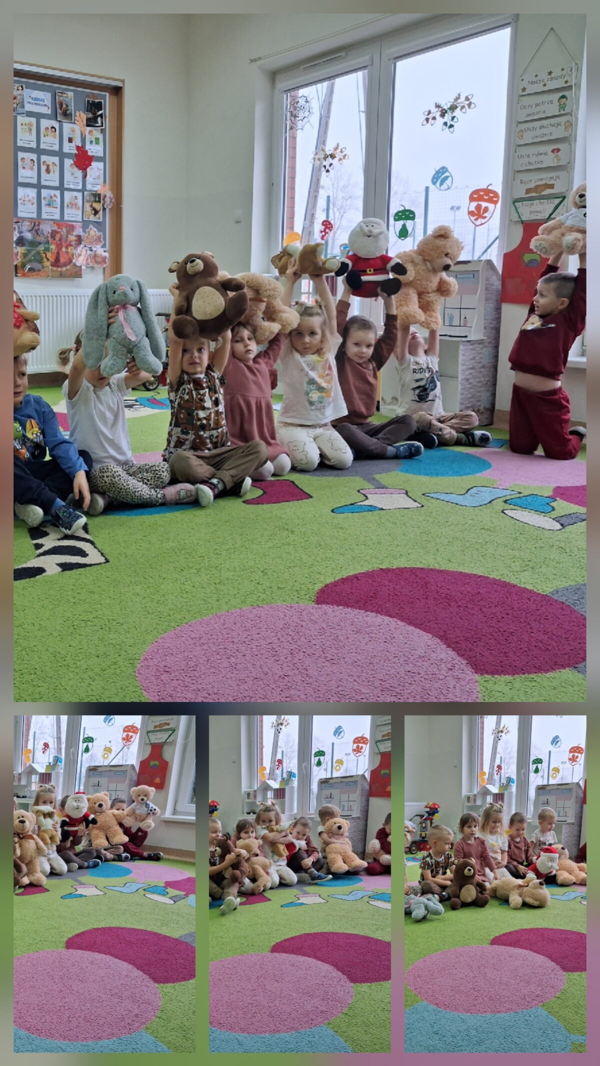 Według dzieci to był najmilszy dzień w przedszkolu! A dlaczego? Bo to dzień pluszowego misia ! Naszych wspaniałych, przytulnych przyjaciół… Kochamy je i doceniamy, że są każdego dnia, w smutkach i radościach. Uczą przyjaźni i świetnej zabawy, mogliśmy wspominać wszystkie misie, liczyć je i przeliczać, odgadywać i szukać. Wspaniała zabawa toczyła się w każdej grupie, a co najważniejsze dzieciom przez cały dzień nie schodziły uśmiechy z twarzy!