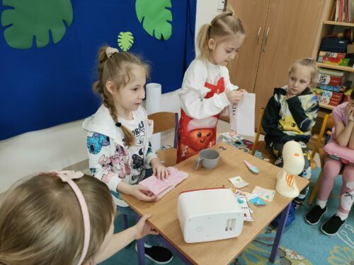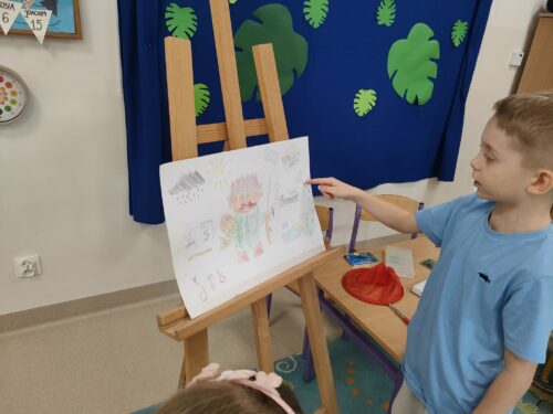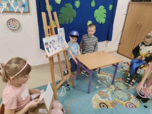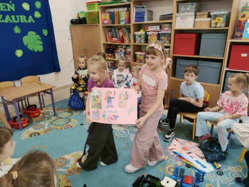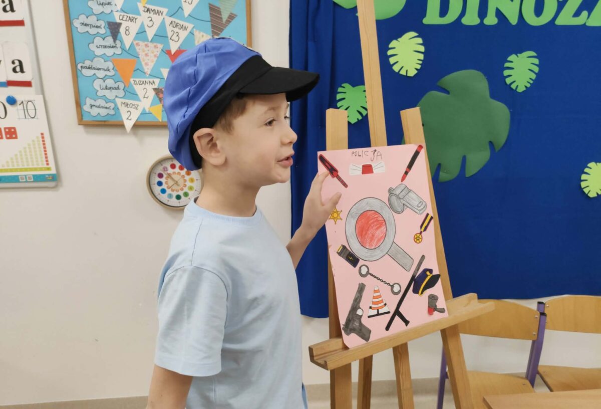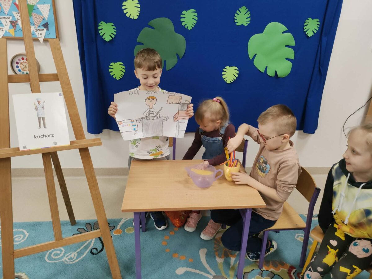 W miniony czwartek – 5.03.2026 r. w grupie 0A odbył się Dzień Zawodów. Tego dnia dzieci miały okazję zaprezentować wybrane przez siebie profesje oraz opowiedzieć o tym, na czym polega praca w danym zawodzie. Dzieci przygotowały się do wydarzenia w domu razem z rodzicami. Przyniosły kolorowe rysunki i plakaty przedstawiające różne zawody, a także akcesoria związane z wybraną profesją. Dzięki temu mogliśmy zobaczyć między innymi elementy strojów czy przedmioty używane w codziennej pracy. Niektóre dzieci przygotowały również krótkie scenki, w których w ciekawy i często bardzo zabawny sposób pokazywały, jak wygląda praca przedstawicieli różnych zawodów. Była to świetna okazja do rozwijania kreatywności, odwagi w wystąpieniach przed grupą oraz poznawania świata pracy. Serdecznie dziękujemy dzieciom i rodzicom za zaangażowanie oraz wspaniałe przygotowanie do tego wydarzenia.