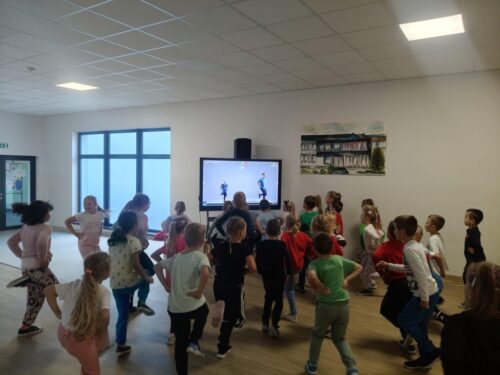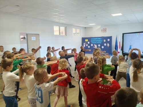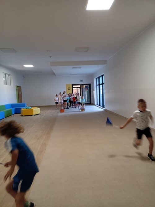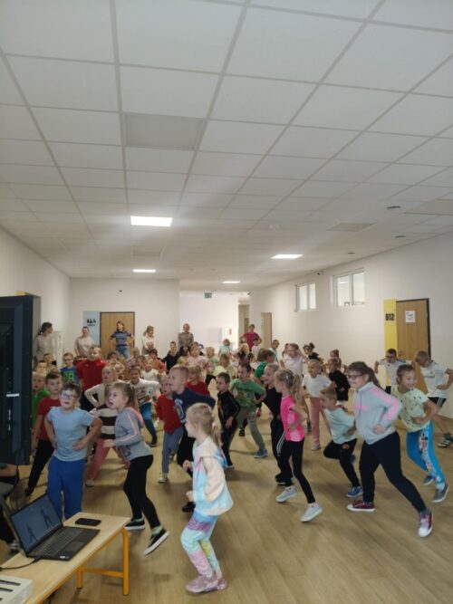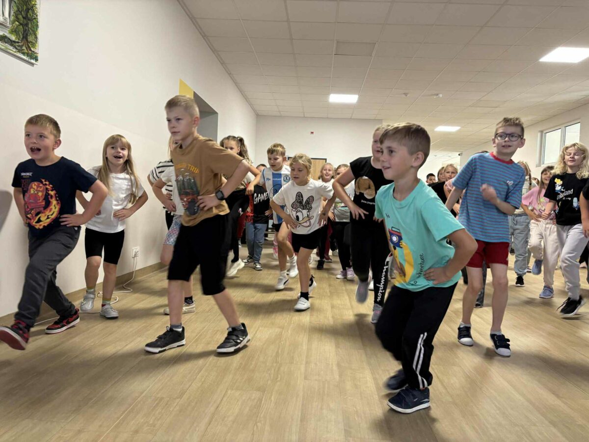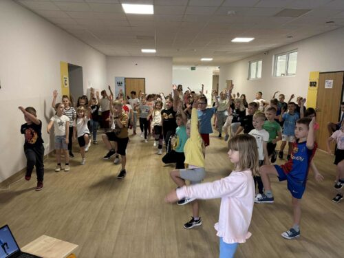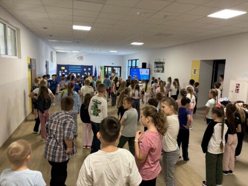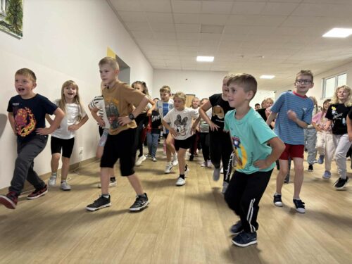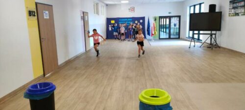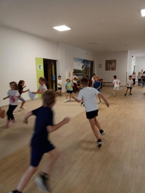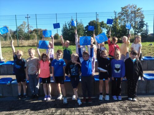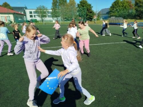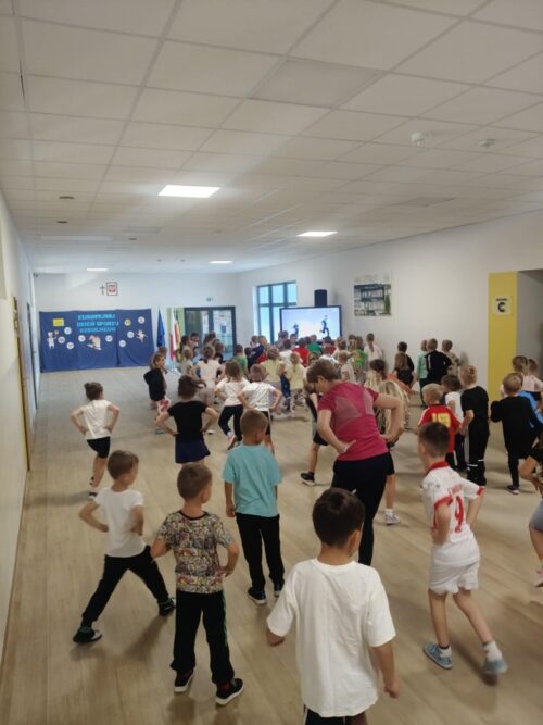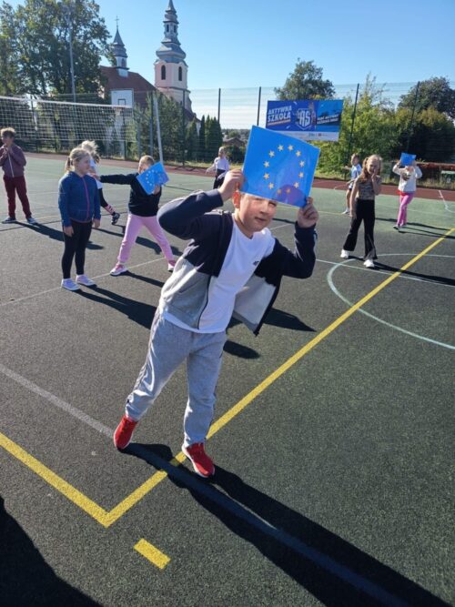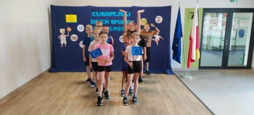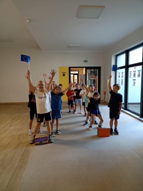 Dzień rozpoczęliśmy wspólnym treningiem z FitSchool na szkolnym korytarzu, w którym uczestniczyli uczniowie klas 0-3. Starsi uczniowie brali udział w rozgrywkach sportowych podczas lekcji wychowania fizycznego. W programie całego wydarzenia znalazły się: mini euro – mecz w siatkówkę i piłkę nożną, bieg z flagą w formie sztafety oraz pełen emocji „europejski berek”.