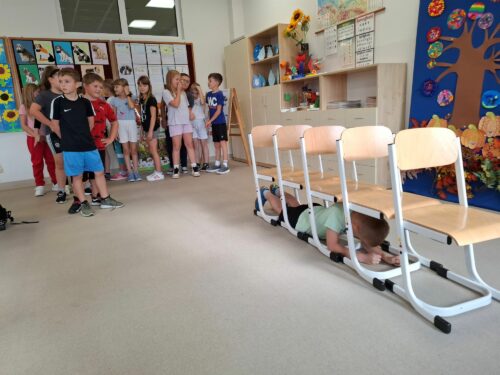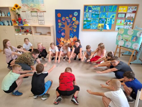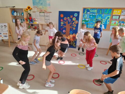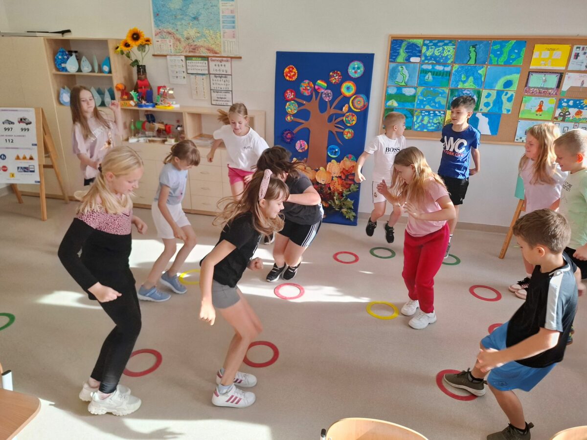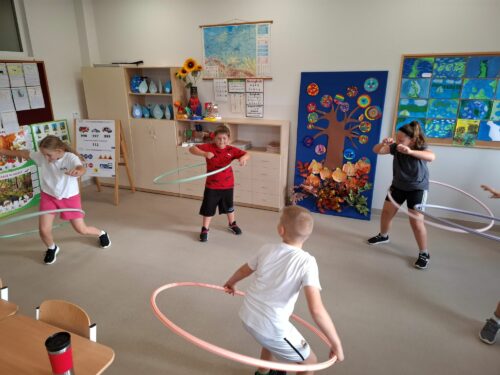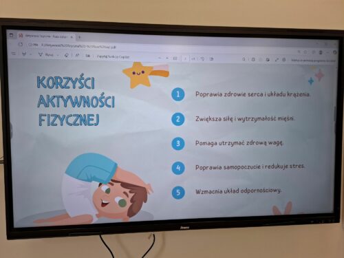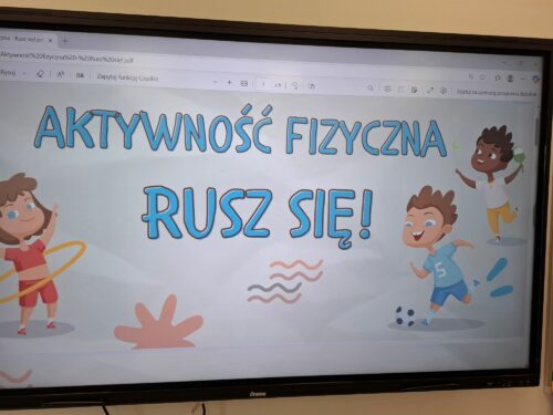 Drugim tematem, który został zrealizowany był temat „Rusz się”. Uczniowie rozwijali sprawność fizyczną i promowali regularną aktywność ruchową. Odbyła się pogadanka, dzieci zapoznały się z prezentacją multimedialną aby dowiedzieć się, że regularne ćwiczenia pomagają wzmocnić mięśnie i kości, poprawiają krążenie, zwiększają odporność organizmu i poprawiają nastrój.