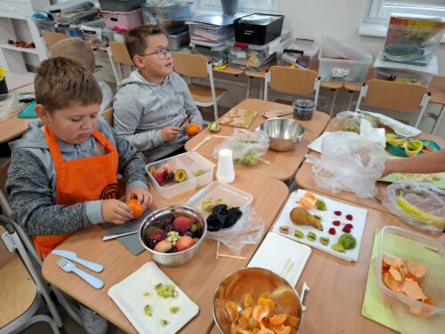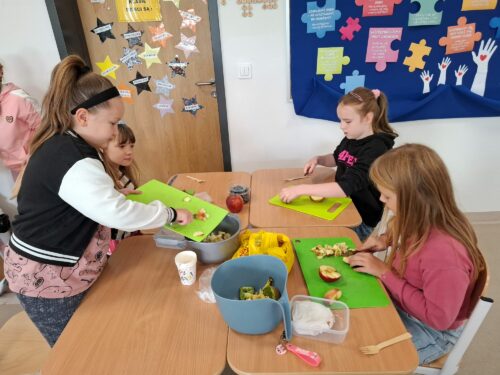 Na przełomie września i października zostały zrealizowane dwa moduły tematyczne. W Pierwszym modułem tematycznym innowacji było „Zdrowe życie”. Uczniowie zapoznali się z zasadami zdrowego odżywiania oraz rozwijali umiejętności przygotowywania zdrowych przekąsek. Oglądali prezentacje multimedialną na temat zdrowego odżywiania i spożywania różnorodnych produktów spożywczych, które dostarczają wszystkim niezbędnych składników odżywczych, takich jak witaminy, minerały, białka, tłuszcze i węglowodany.