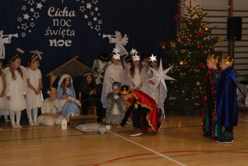 We wtorek 16 grudnia uczniowie klas drugich zaprezentowali Jasełka bożonarodzeniowe dla swoich rodziców. Uroczystość rozpoczęła dyrektor szkoły Pani Beata Grau, która serdecznie powitała gości oraz złożyła wszystkim zgromadzonym świąteczne życzenia. Następnie głos zajęli uczniowie, którzy z wielkim zaangażowaniem wcielili się w swoje role, przekazując w ten sposób przesłanie płynące z historii narodzenia Pana Jezusa. Przedstawienie wprowadziło wszystkich gości w wyjątkowy, świąteczny nastrój. Wspólne spotkanie zwieńczył poczęstunek, przy którym w ciepłej atmosferze toczyły się rozmowy, a w tle rozbrzmiewały nastrojowe, świąteczne melodie.
