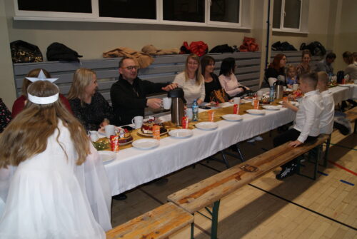 Spotkanie było nie tylko okazją do obejrzenia pięknych jasełek, ale również do wspólnego spędzenia czasu, rozmów i dzielenia się świąteczną radością, co jeszcze bardziej zbliżyło rodziców, dzieci i nauczycieli, tworząc prawdziwie ciepłą szkolną wspólnotę.