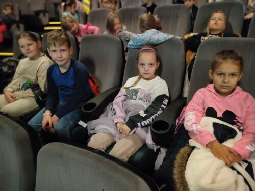 18 listopada uczniowie klas pierwszych i drugich wyruszyli do Kina Remus w Kościerzynie, aby obejrzeć niezwykły spektakl teatralny „Mała, zielona planeta”, Już od samego początku przedstawienie porwało dzieci w barwny, magiczny świat, w którym o losie naszej planety decydowało dwoje bohaterów – Zosia i Janek.