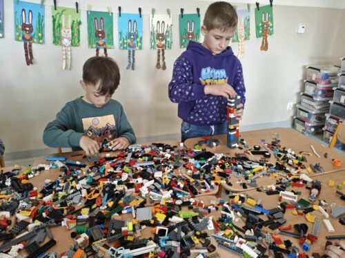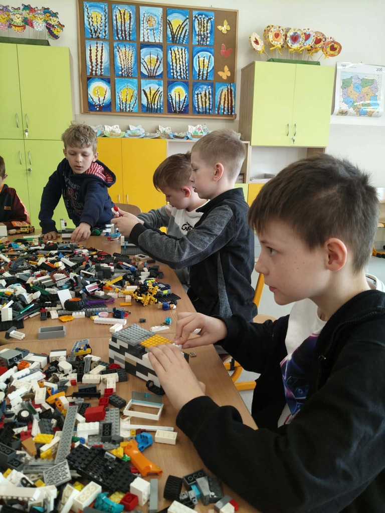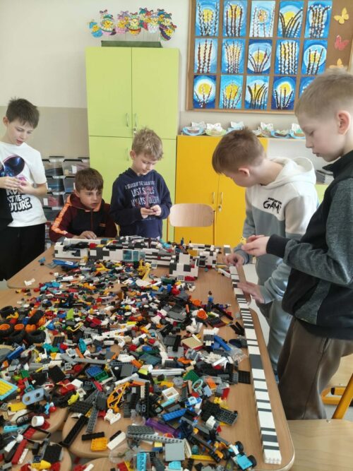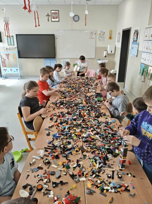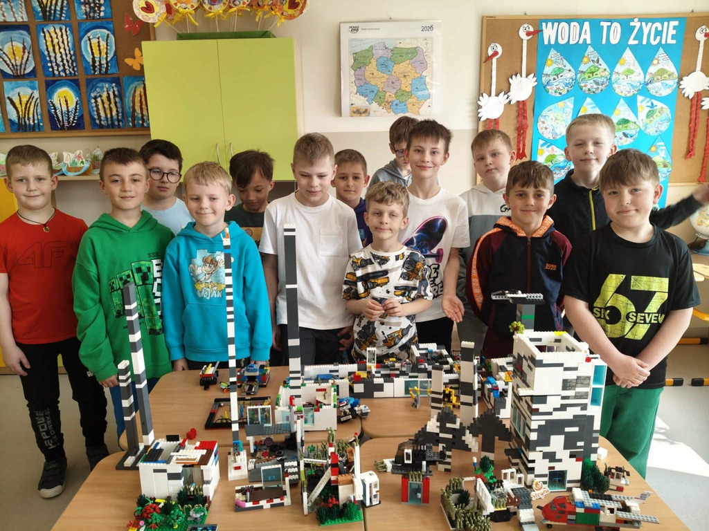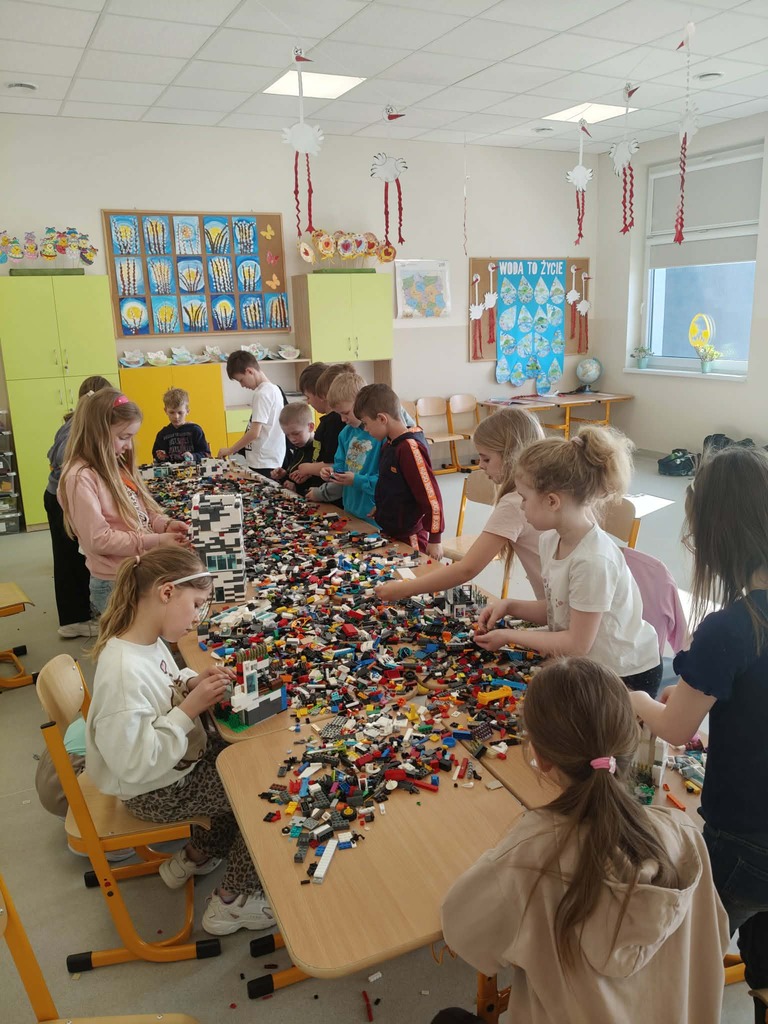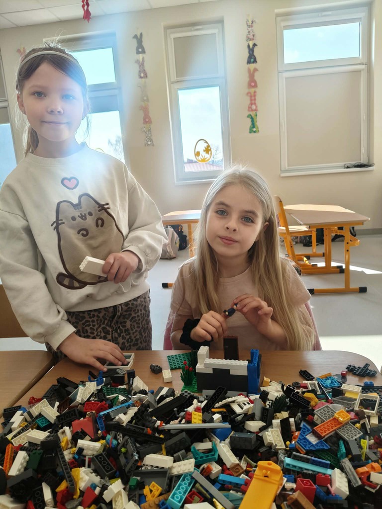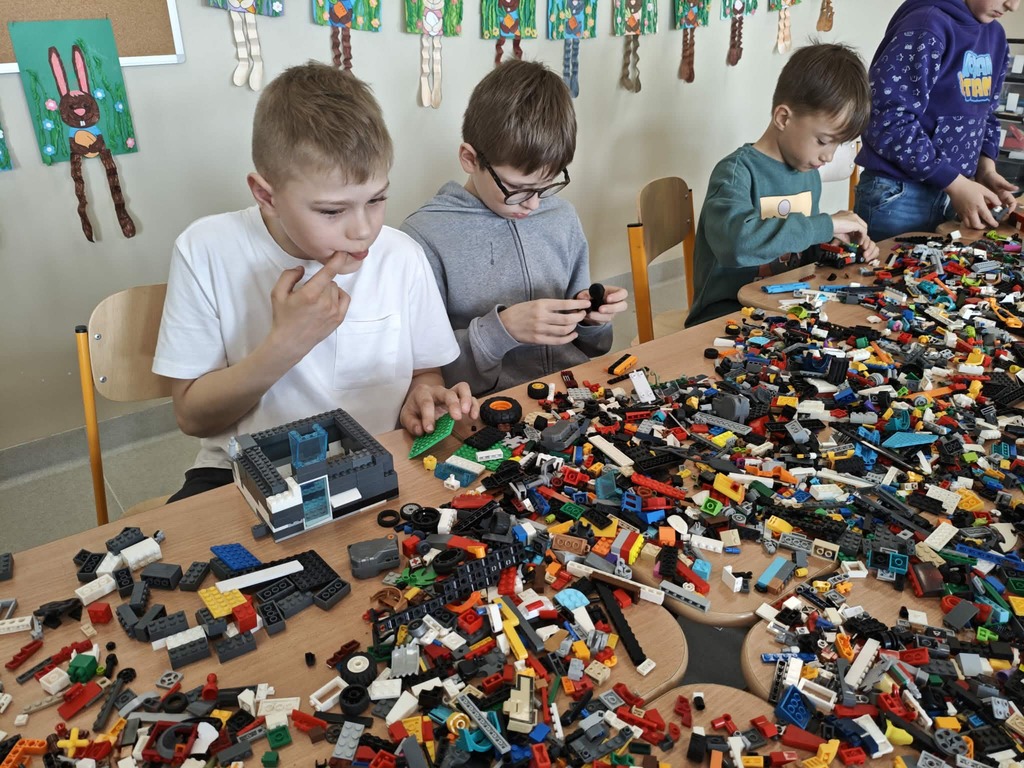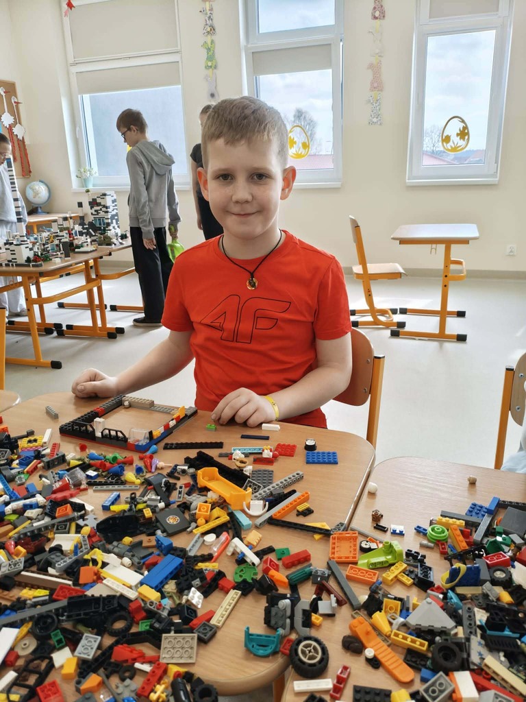 W naszej szkole kreatywność nie ma granic! W środę 15 kwietnia uczniowie klas drugich wzięli udział w wyjątkowych zajęciach pod hasłem „LEGOmania”, podczas których nauka połączyła się z doskonałą zabawą. Dzieci miały okazję rozwijać swoją wyobraźnię przestrzenną, zdolności manualne oraz umiejętność pracy w grupie. Podczas zajęć powstały niezwykłe budowle – od fantastycznych domów, ogrodów, aż po całe miasta z klocków. Nie zabrakło również elementów edukacyjnych. Uczniowie ćwiczyli umiejętność liczenia i porównywania, poznawali pojęcia związane z symetrią i rytmem, uczyli się precyzyjnego opisywania swoich konstrukcji.