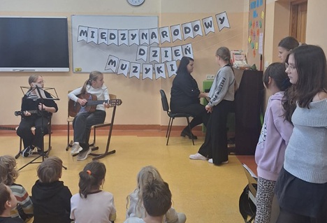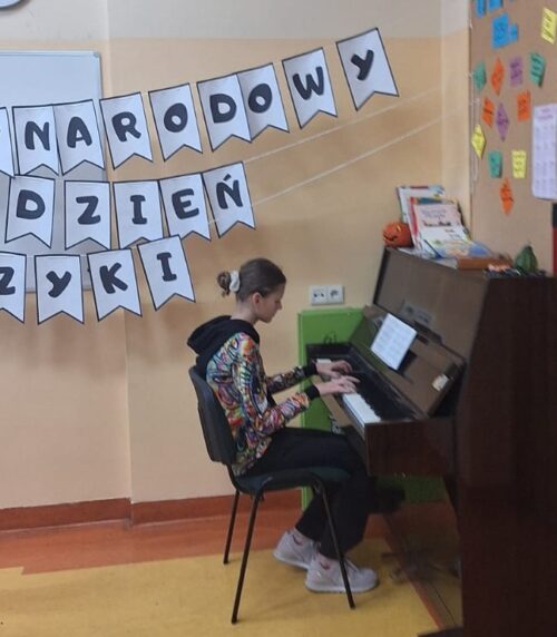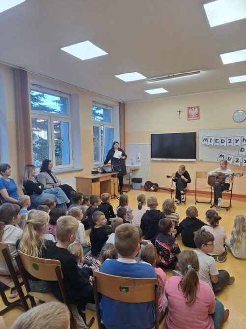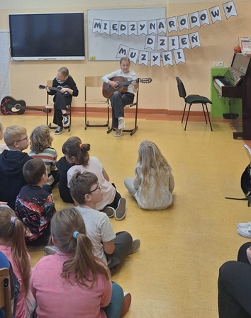 1 października na całym świecie obchodzony jest Międzynarodowy Dzień Muzyki. W naszej szkole świętowaliśmy z tej okazji cały miesiąc! Do najważniejszych wydarzeń z tego okresu należy koncert dla klas I-III, podczas którego uczniowie wysłuchali utworów przygotowanych przez starsze koleżanki oraz prelekcji na temat instrumentów, wspólnie śpiewali, a także mogli spróbować swoich sił w grze na instrumencie o nazwie djembe.