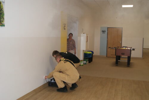 Na zakończenie składamy ogromne podziękowania strażakom z Ochotniczej Straży Pożarnej w Dziemianach i Państwowej Straży Pożarnej z Kościerzyny, którzy nie tylko profesjonalnie przeprowadzili akcję, ale także z wielkim zaangażowaniem dzielili się swoją wiedzą i doświadczeniem z uczniami. To dzięki nim cała próba była tak realistyczna i pouczająca.