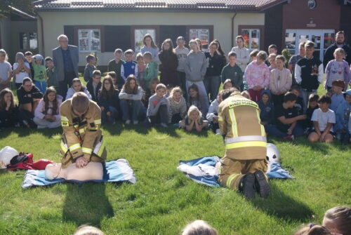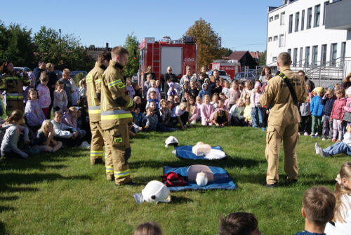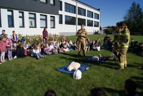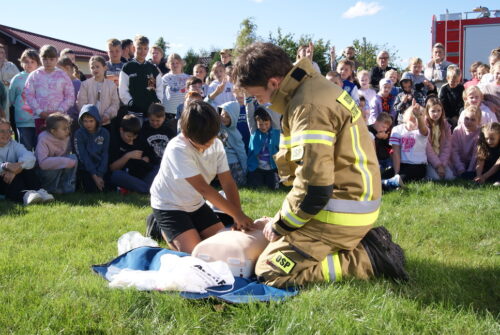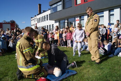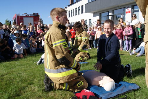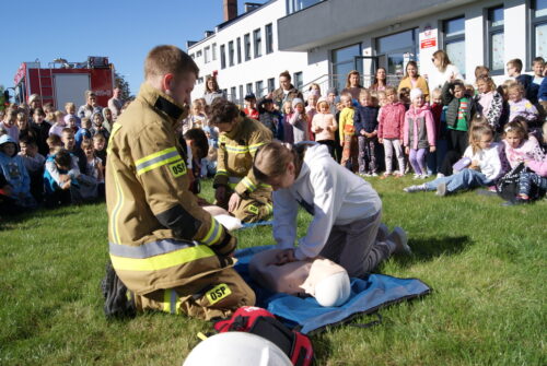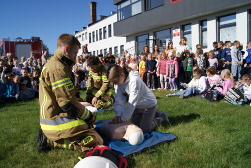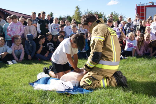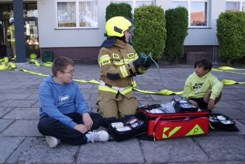 Po oficjalnym zakończeniu ćwiczeń uczniowie mieli okazję porozmawiać ze strażakami i z bliska obejrzeć wóz strażacki. Największą atrakcją okazała się możliwość zajęcia miejsca za kierownicą i choć na chwilę poczucia się jak prawdziwy ratownik. Strażacy przeprowadzili również pokaz udzielania pierwszej pomocy, który wzbudził ogromne zainteresowanie – wielu uczniów spróbowało własnych sił w resuscytacji pod czujnym okiem fachowców.