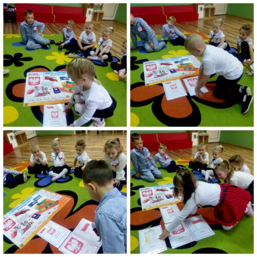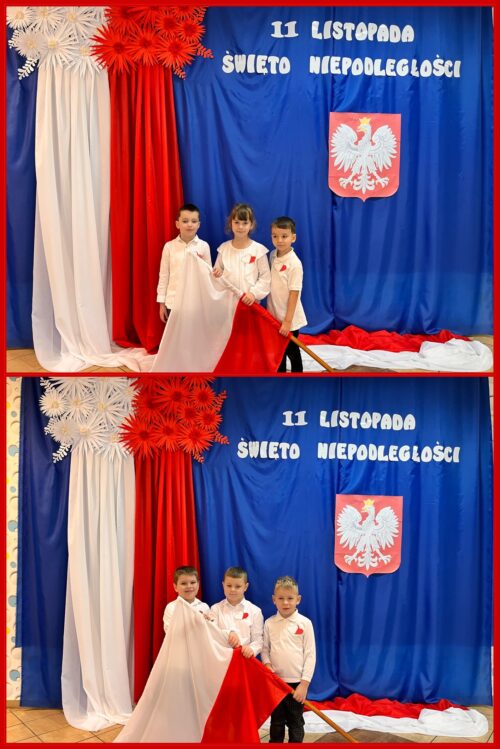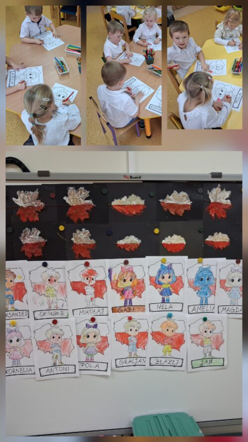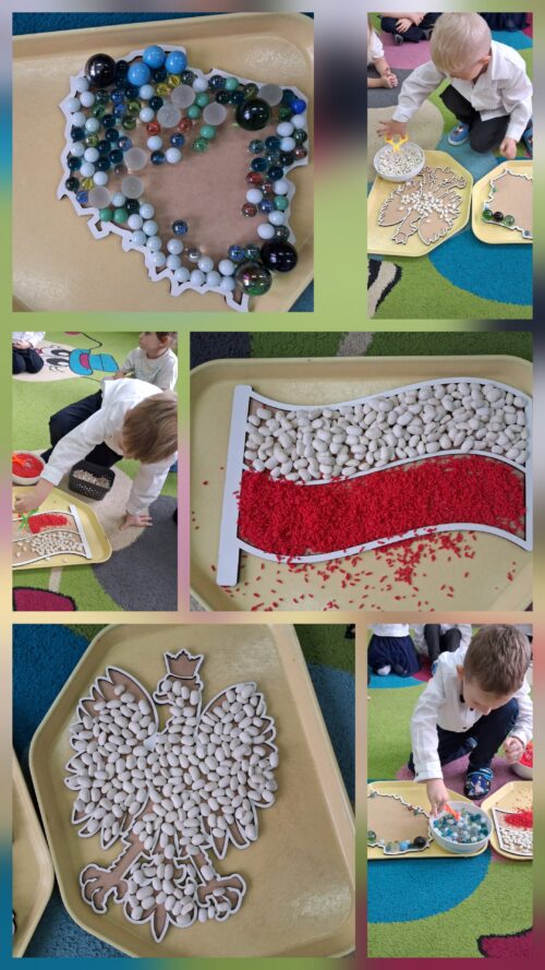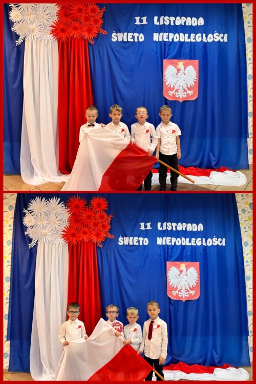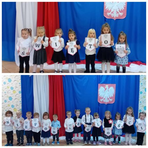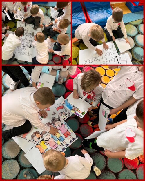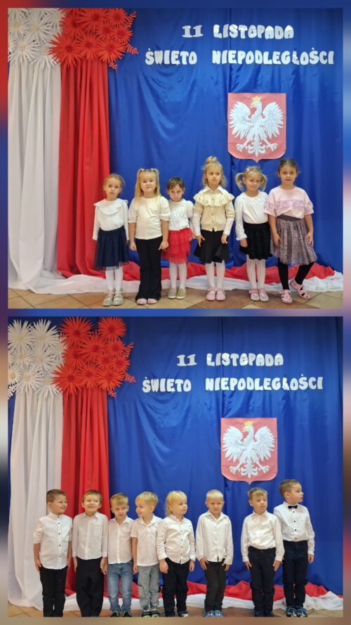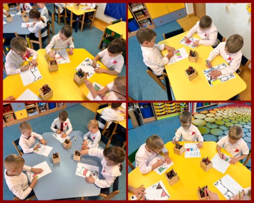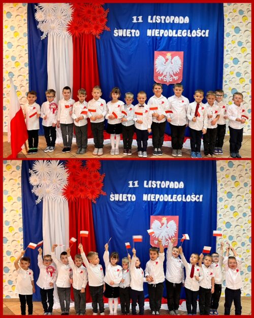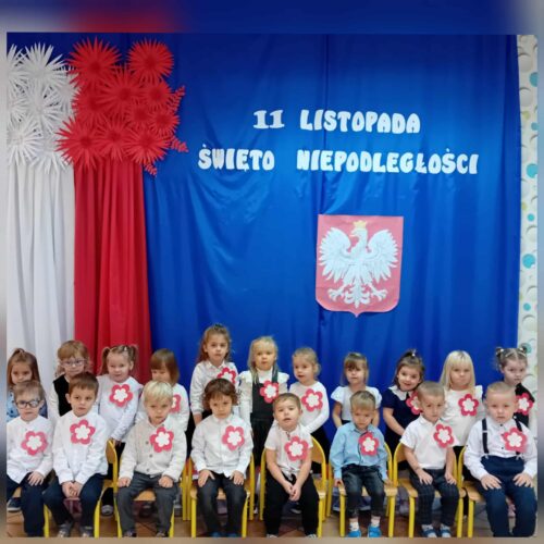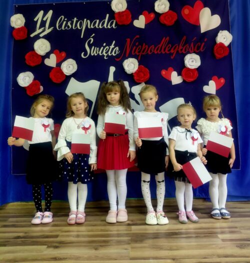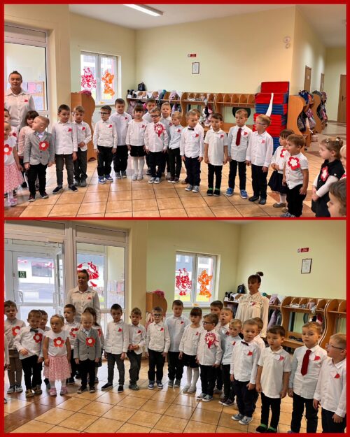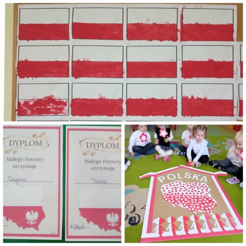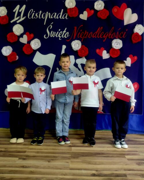 Przedszkolaki z ogromnym zaangażowaniem wykonywały prace plastyczne o tematyce patriotycznej, tworząc biało-czerwone flagi, kotyliony i godła. Kulminacyjnym punktem dnia było uroczyste odśpiewanie hymnu narodowego – „Mazurka Dąbrowskiego”, w którym dzieci uczestniczyły z dumą i powagą.