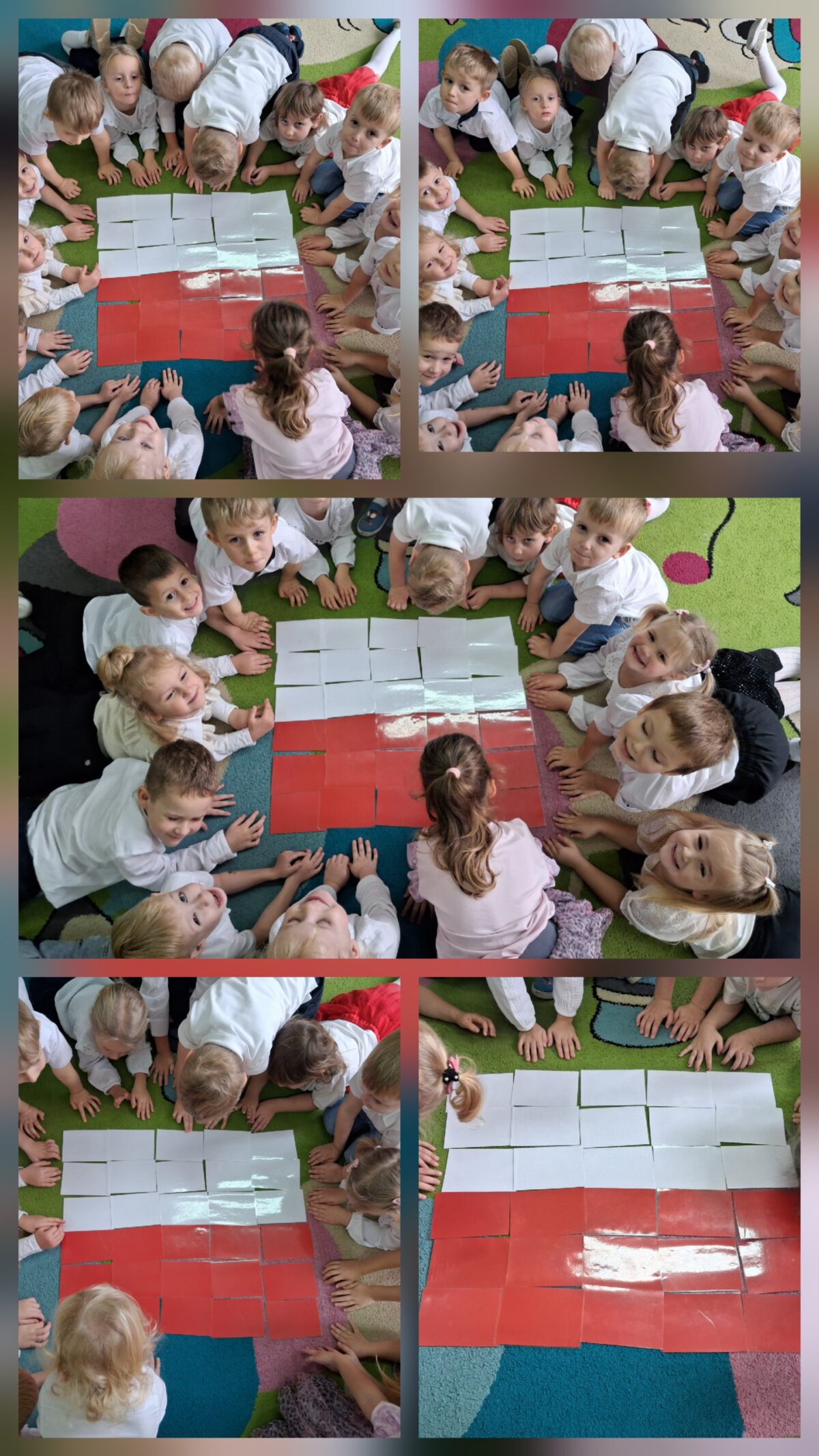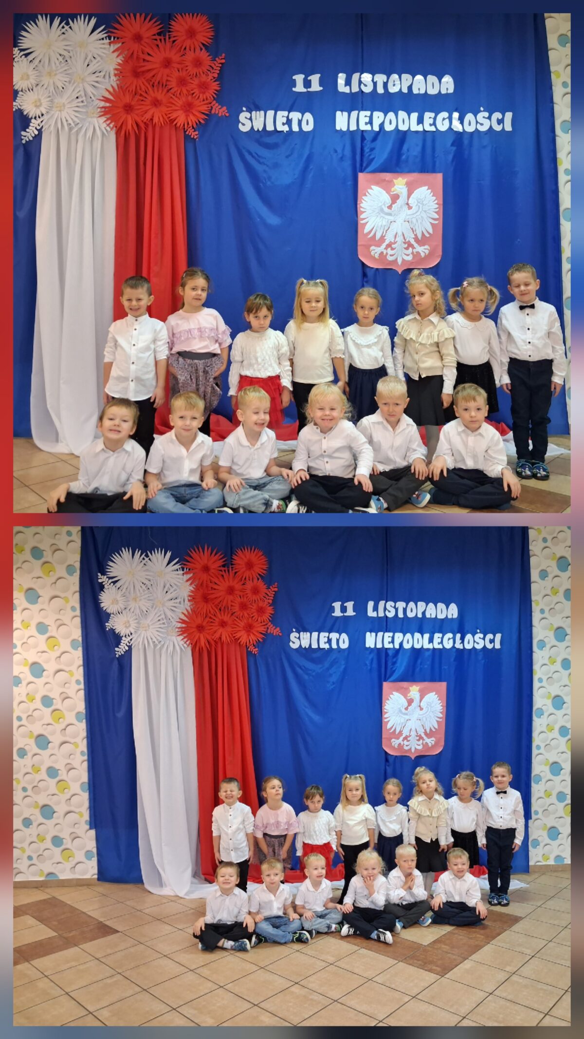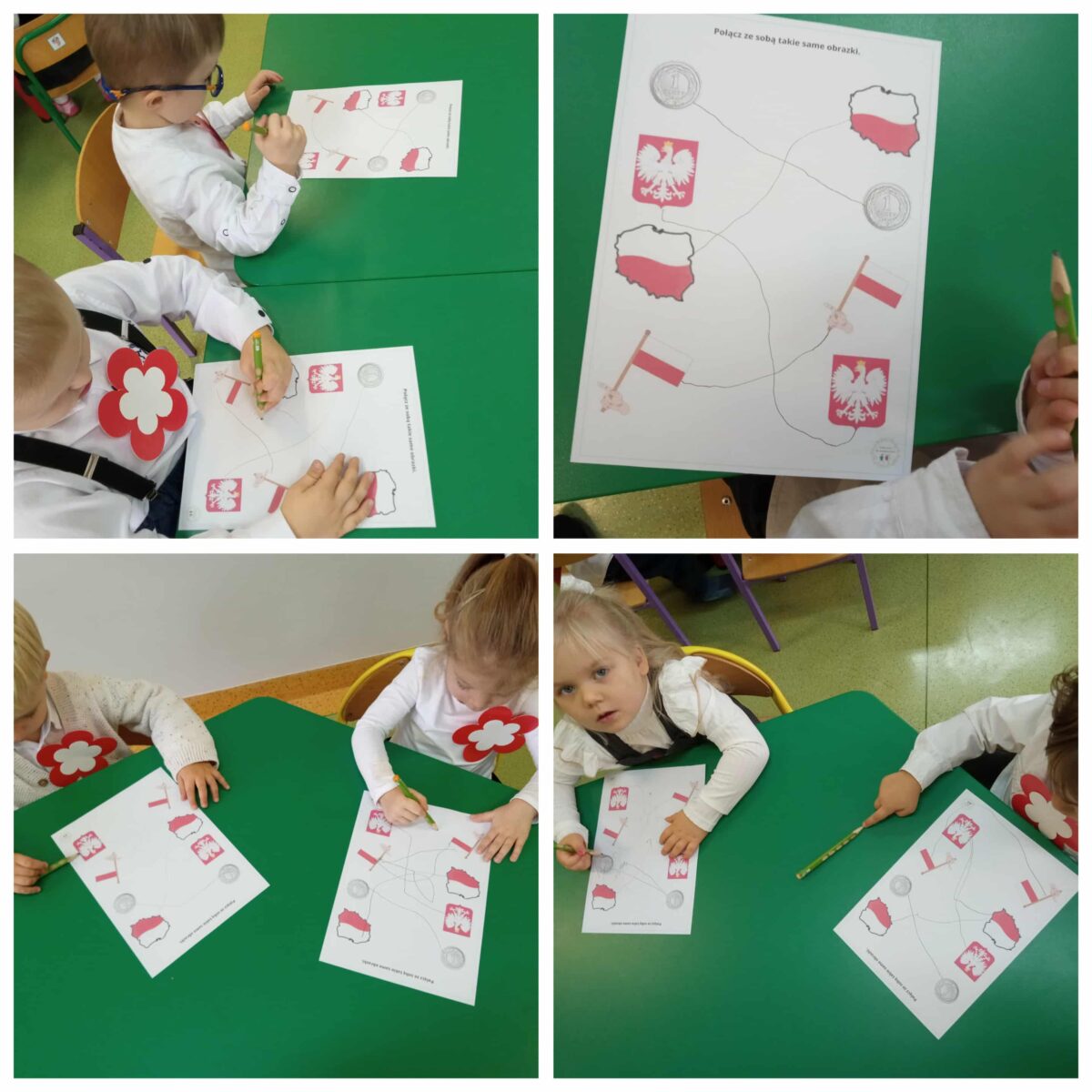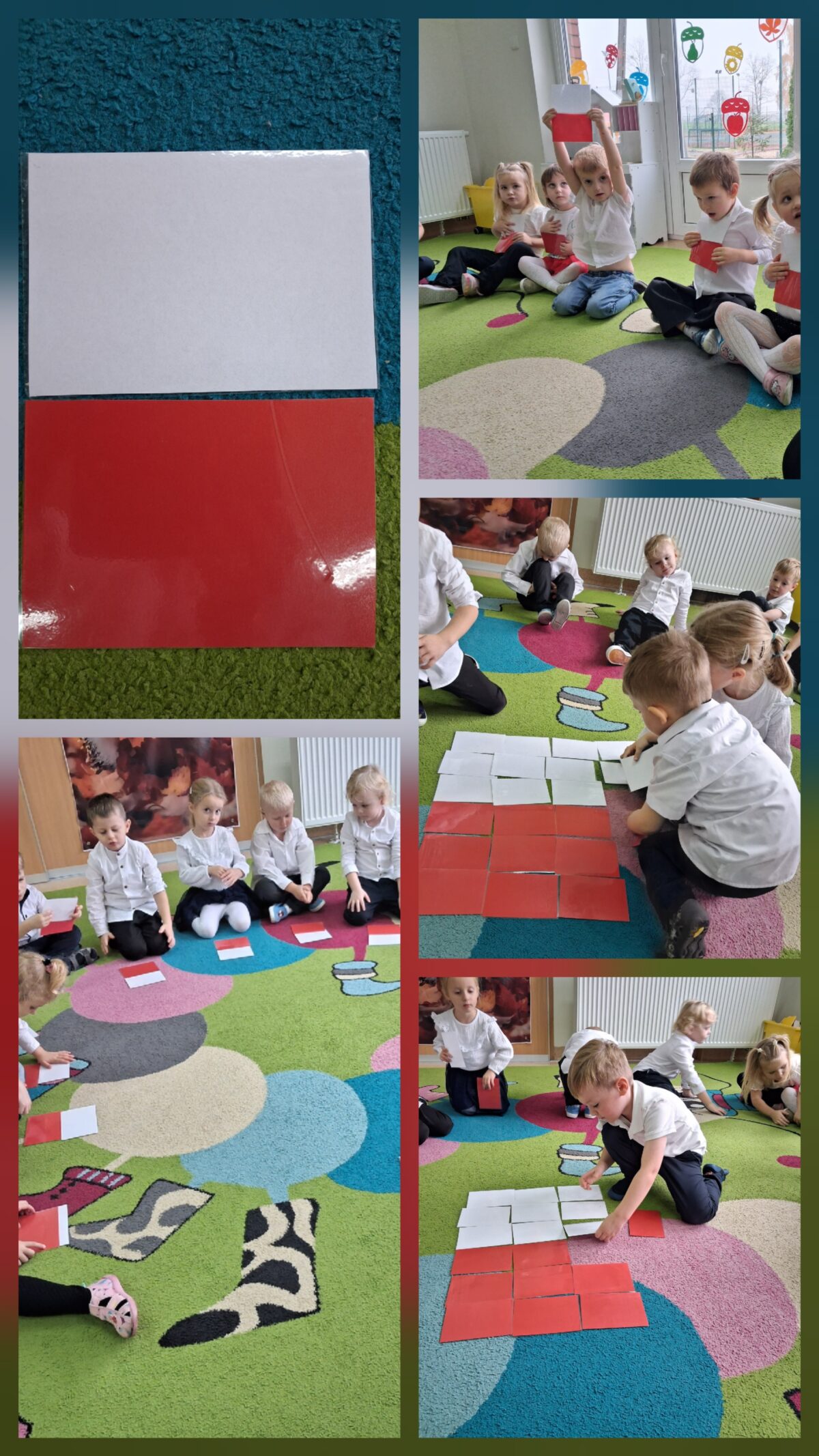 Przedszkolaki z ogromnym zaangażowaniem wykonywały prace plastyczne o tematyce patriotycznej, tworząc biało-czerwone flagi, kotyliony i godła. Kulminacyjnym punktem dnia było uroczyste odśpiewanie hymnu narodowego – „Mazurka Dąbrowskiego”, w którym dzieci uczestniczyły z dumą i powagą.