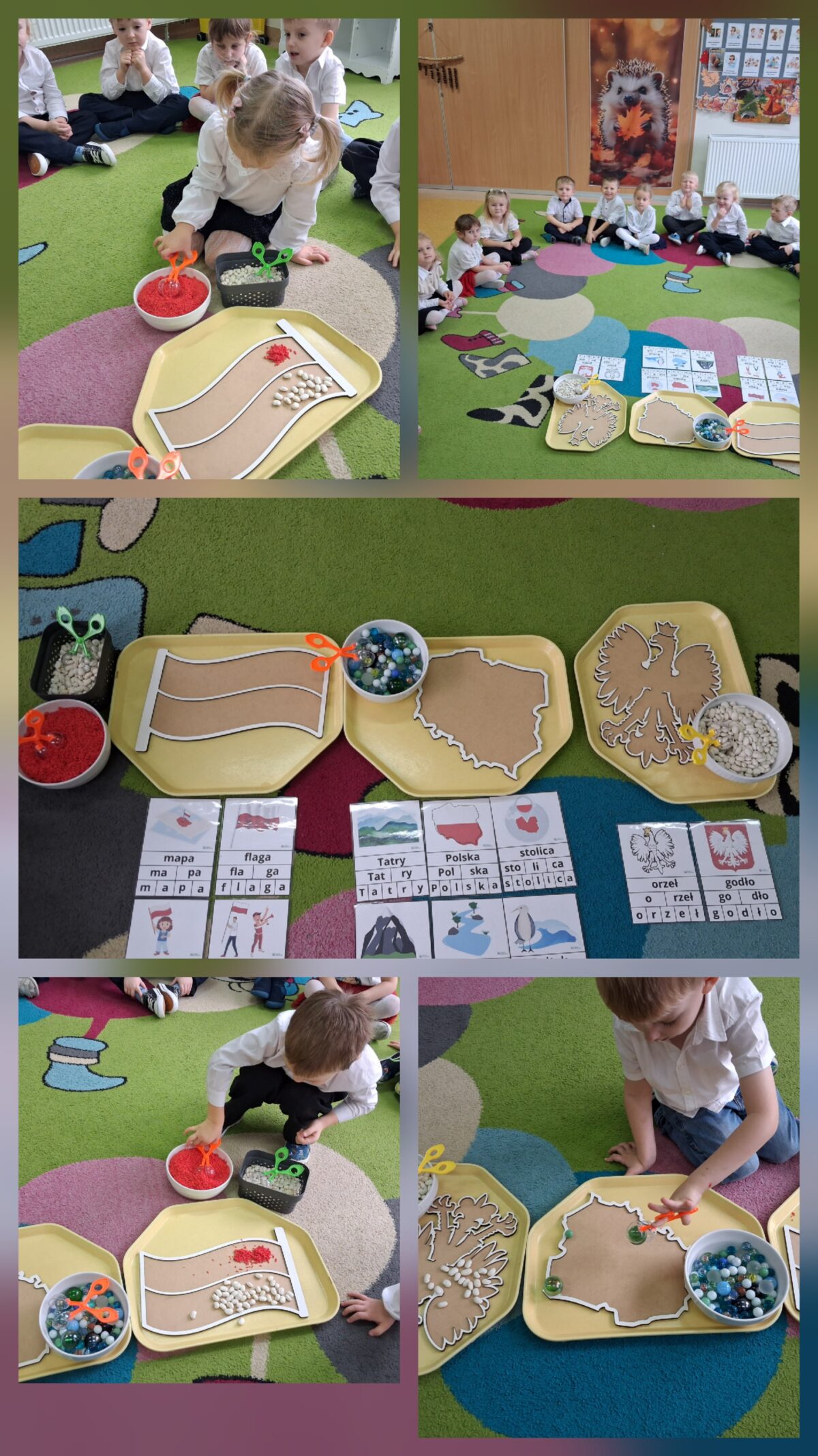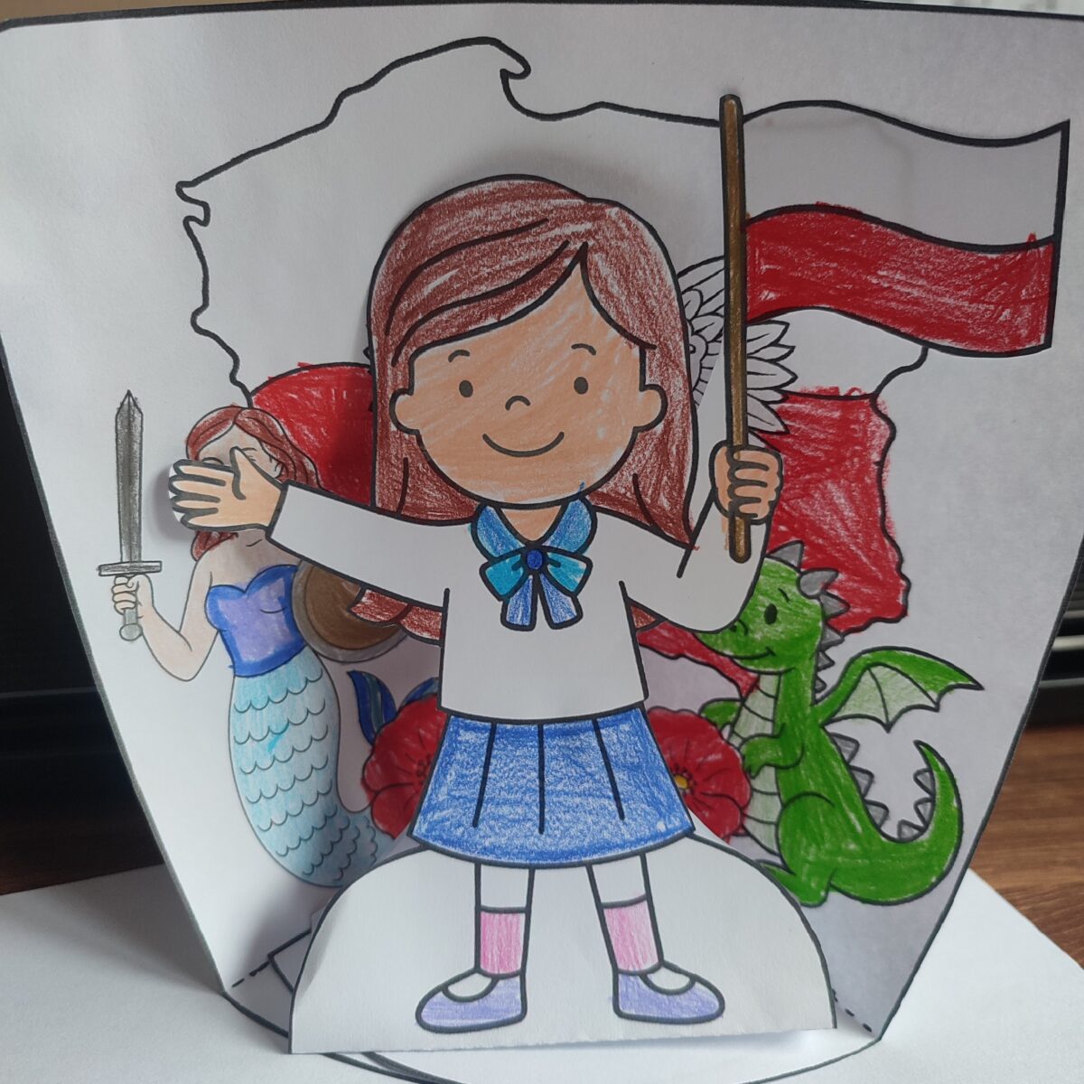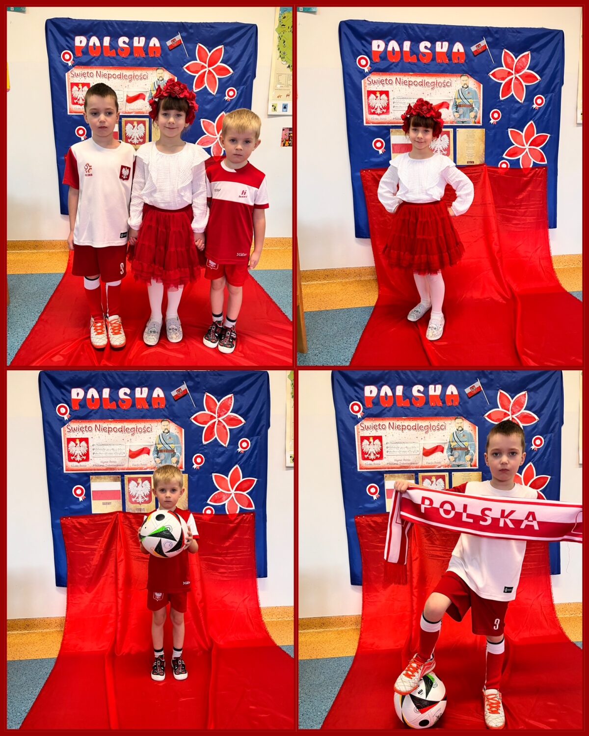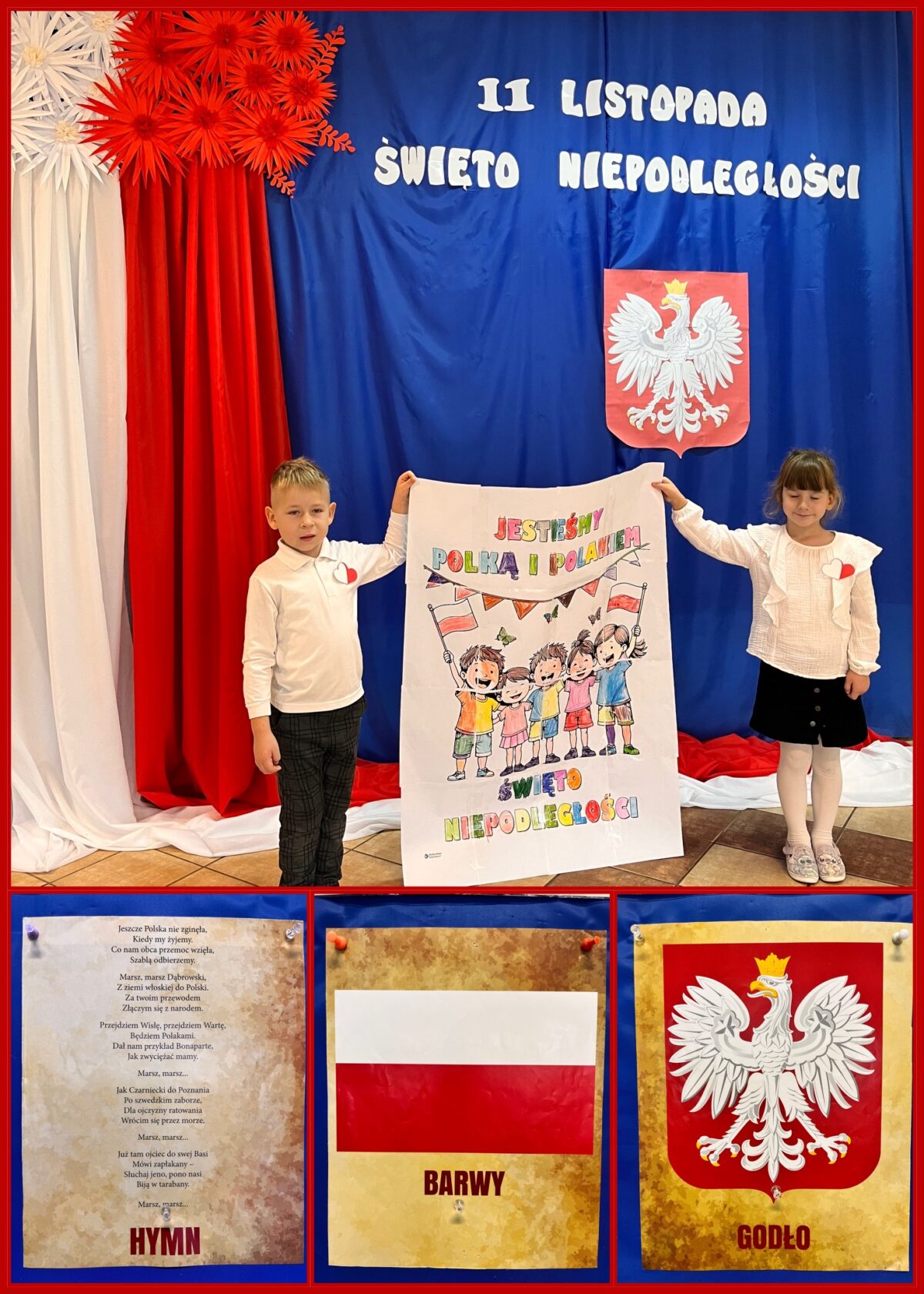 Przedszkolaki z ogromnym zaangażowaniem wykonywały prace plastyczne o tematyce patriotycznej, tworząc biało-czerwone flagi, kotyliony i godła. Kulminacyjnym punktem dnia było uroczyste odśpiewanie hymnu narodowego – „Mazurka Dąbrowskiego”, w którym dzieci uczestniczyły z dumą i powagą.