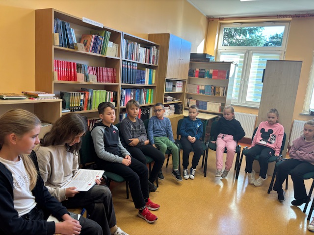 29 i 30 września obchodziliśmy w naszej szkolnej bibliotece Ogólnopolski Dzień Głośnego Czytania. Jest to wspaniała okazja do wprowadzenia dzieci w magiczny świat książek. Celem święta jest promowanie głośnego czytania dzieciom. Z tej okazji do biblioteki szkolnej przybyły dzieci z klas 1- 3 wraz z wychowawczyniami. Uczniowie z ogromnym zainteresowaniem wysłuchały fragmentów swoich lektur. M.in. poznały postać Detektywa Pozytywki, Mani, dziewczynki innej niż wszystkie, kotka Cukierka, który jest wielkim łobuziakiem , sympatycznego misia z książki “Pamiętnik Czarnego Noska”, Bazyliszka oraz Juliana Tuwima i to, jak został poetą.