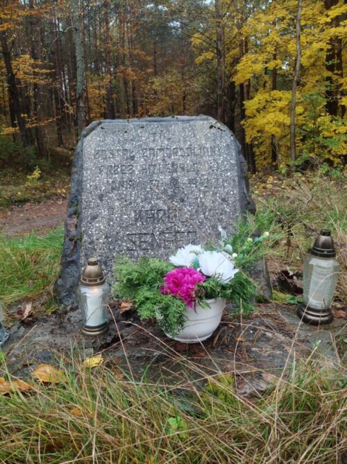 Zapaliliśmy znicz pamięci na symbolicznym grobie Franciszka Skwierawskiego, pseudonim „Lech”, członka oddziału partyzanckiego AK, który został zamordowany w czerwcu 1944 r. w okolicach leśniczówki Trawice, w miejscu obławy oddziału niemieckiego na znajdujący się tam bunkier leśny.