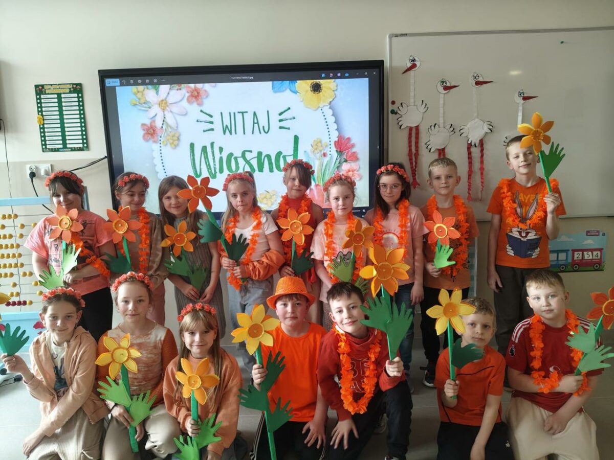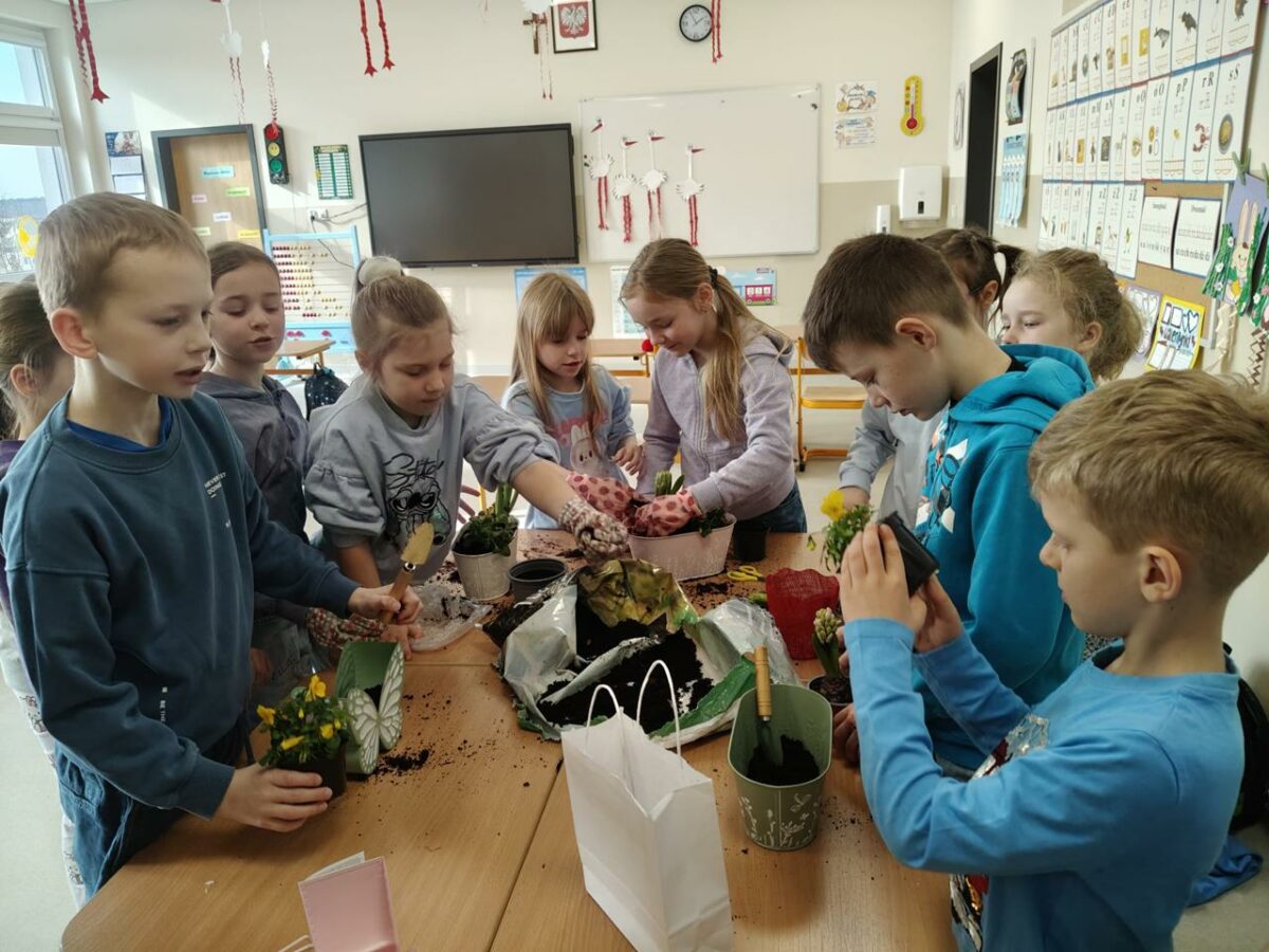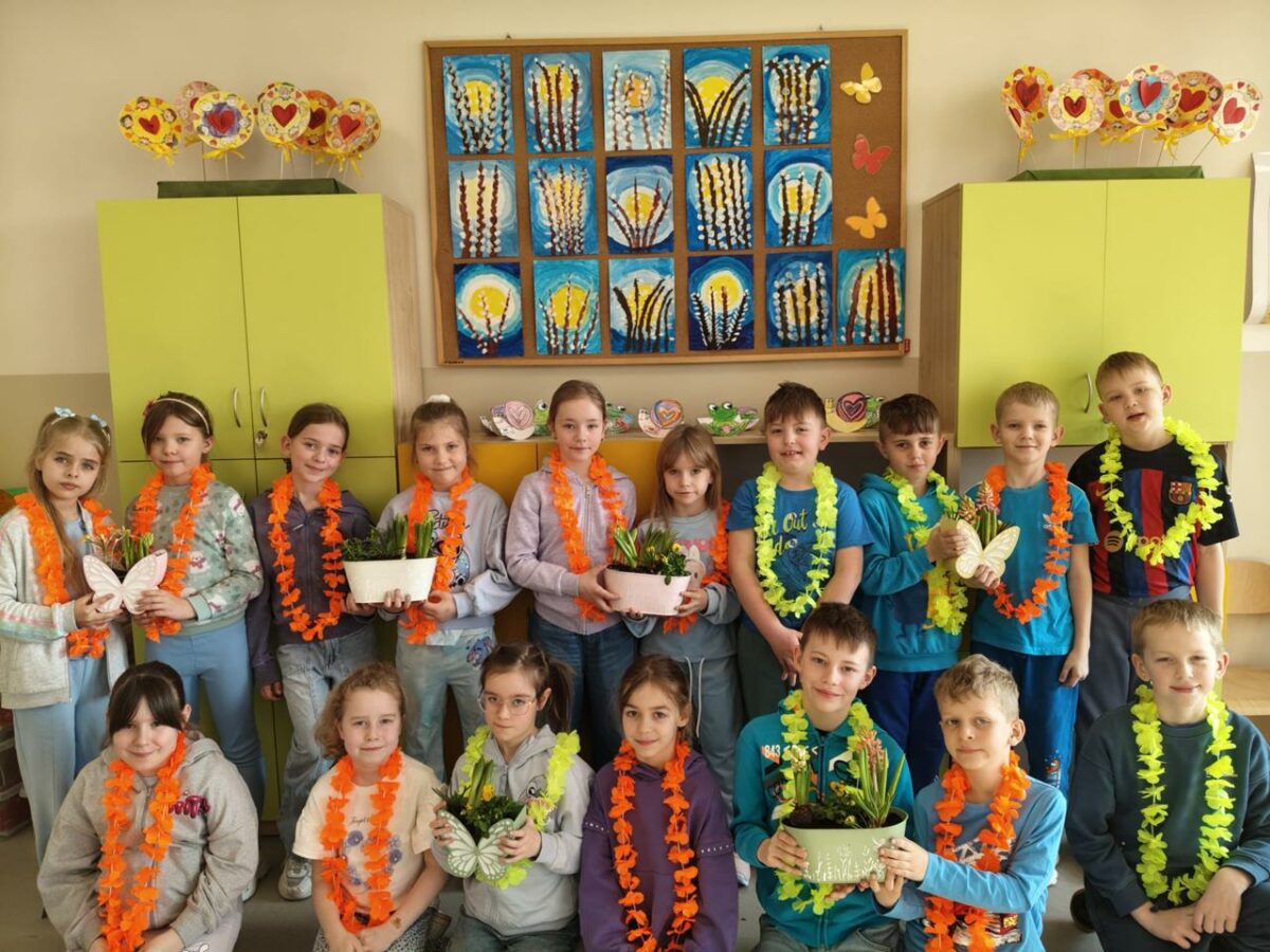 Pierwszy dzień wiosny w naszej szkole upłynął w radosnej i pełnej energii atmosferze. Uczniowie klas I-III z zaangażowaniem uczestniczyli w różnorodnych aktywnościach związanych z nadejściem nowej pory roku. Podczas zajęć uczniowie poszukiwali oznak wiosny, dzielili się swoimi spostrzeżeniami, rozmawiali o zmianach zachodzących w przyrodzie oraz zakładali wiosenną hodowlę roślin. Następnie rozwijały swoją kreatywność, wykonując barwne prace plastyczne inspirowane wiosną. Powstałe dekoracje wprowadziły do sal lekcyjnych wyjątkowy, pogodny nastrój. Nie zabrakło także gier i zabaw, które dostarczyły uczniom wiele radości i uśmiechu. Wspólne aktywności sprzyjały integracji oraz budowaniu pozytywnych relacji w grupie. To był dzień pełen wrażeń, który wprowadził wszystkich w pogodny, wiosenny nastrój.