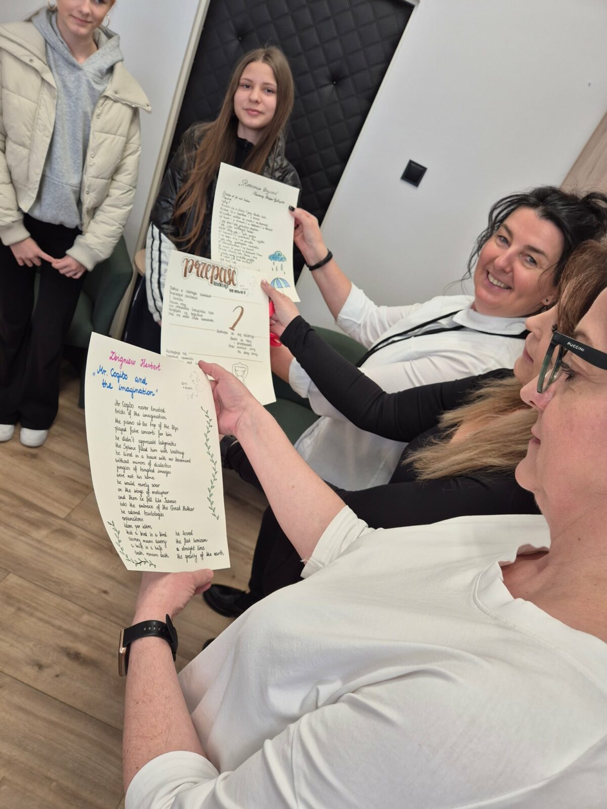 Z przygotowanymi przez siebie 25 wierszami odwiedzili wyjątkowych adresatów. Poetyckie upominki z rąk młodzieży otrzymali m.in.: Dyrekcja naszej szkoły, Wójt Gminy Dziemiany, pan Piotr Laska, oraz Zastępca Wójta, pani Katarzyna Sprawka, ksiądz proboszcz, Andrzej Kubisz, właściciele i pracownicy lokalnych sklepów i urzędów oraz napotkani na ulicach przechodnie.