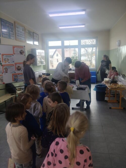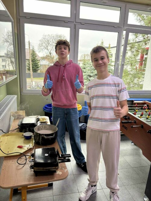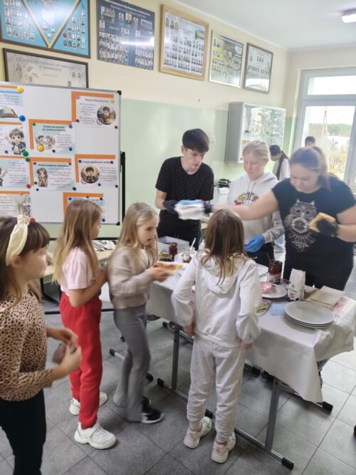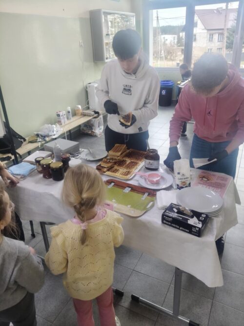 Nad całością wydarzenia czuwały opiekunki Samorządu – pani Natalia Kuklińska oraz pani Joanna Stachowicz, które koordynowały przygotowania oraz wspierały uczniów w trakcie akcji. W działania aktywnie włączyły się także pani Magdalena Klemann oraz pani Weronika Stankowska, pomagając zarówno przy przygotowaniu gofrów, jak i przy obsłudze stanowiska.