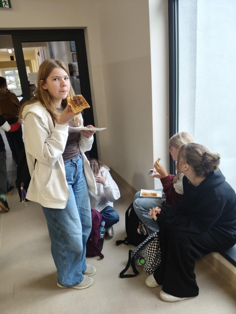 W piątek 14 listopada w naszej szkole odbyła się wyjątkowo apetyczna akcja – Słodki Piątek, podczas której Samorząd Uczniowski sprzedawał świeżo wypiekane gofry. Korytarz szkolny wypełnił się zapachem wanilii, śmiechem uczniów i lekkim „kolejkowym” podekscytowaniem.