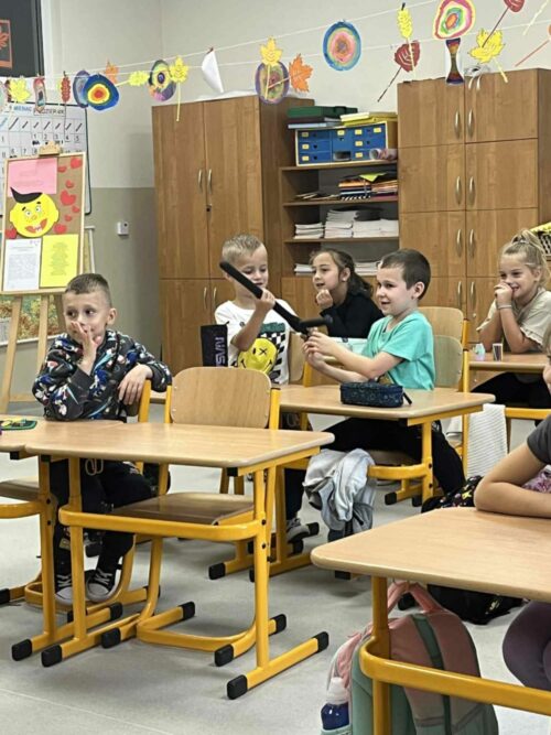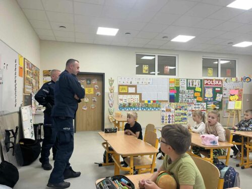 8 października uczniowie klas pierwszych uczestniczyli w wyjątkowym spotkaniu z funkcjonariuszami Policji. Goście opowiedzieli dzieciom o swojej odpowiedzialnej pracy oraz przypomnieli najważniejsze zasady bezpiecznego poruszania się po drodze – zarówno jako piesi, jak i pasażerowie.