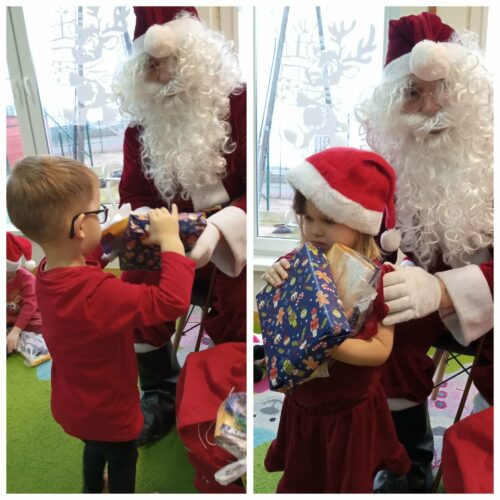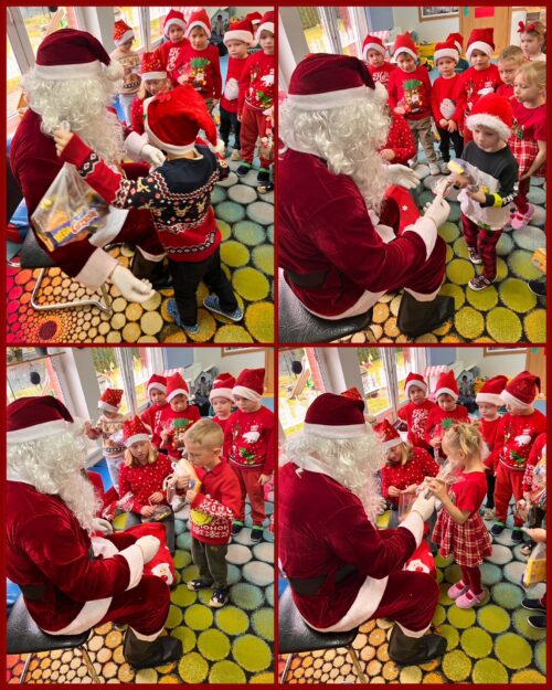 8 grudnia nasze przedszkolaki wyglądały wyjątkowo – po prostu czerwono i ,,mikołajkowo”. Od rana panował gwar i radość. Zarówno dzieci z przedszkola w Dziemianach, jak i z oddziału w Trzebuniu z wielką niecierpliwością oczekiwały na przyjście niezwykłego gościa. Święty Mikołaj nie kazał długo na siebie czekać i już po śniadaniu zawitał do przedszkola. Podczas spotkania przedszkolaki śpiewały piosenki, tańczyły, recytowały wierszyki, rozmawiały z Mikołajem, opowiadały o zabawach w przedszkolu, wręczyły imieninowe życzenia, częstowały pierniczkami i oczywiście chwaliły się, że są bardzo grzeczne. Święty Mikołaj wręczył każdemu dziecku wspaniały prezent. Śmiechu i radości było wiele. Na twarzach widać było wielkie wzruszenie i zadowolenie. Mikołaj na zakończenie spotkania obiecał dzieciom, że odwiedzi je w przyszłym roku.