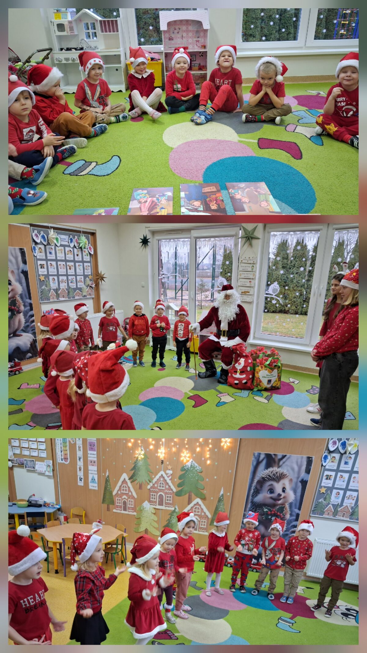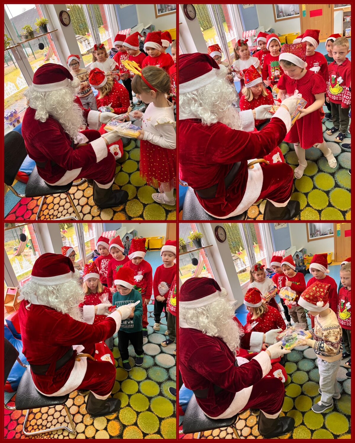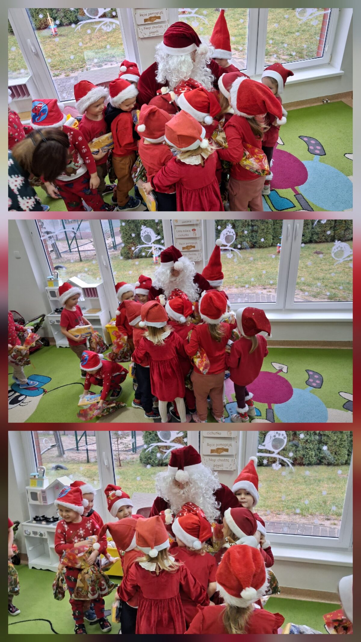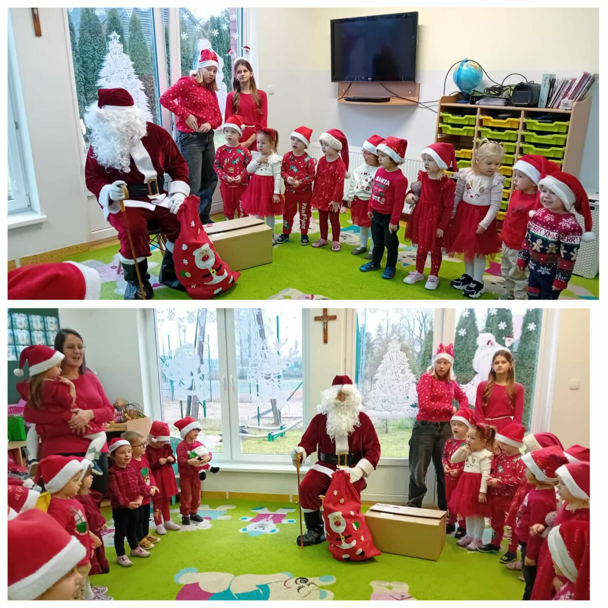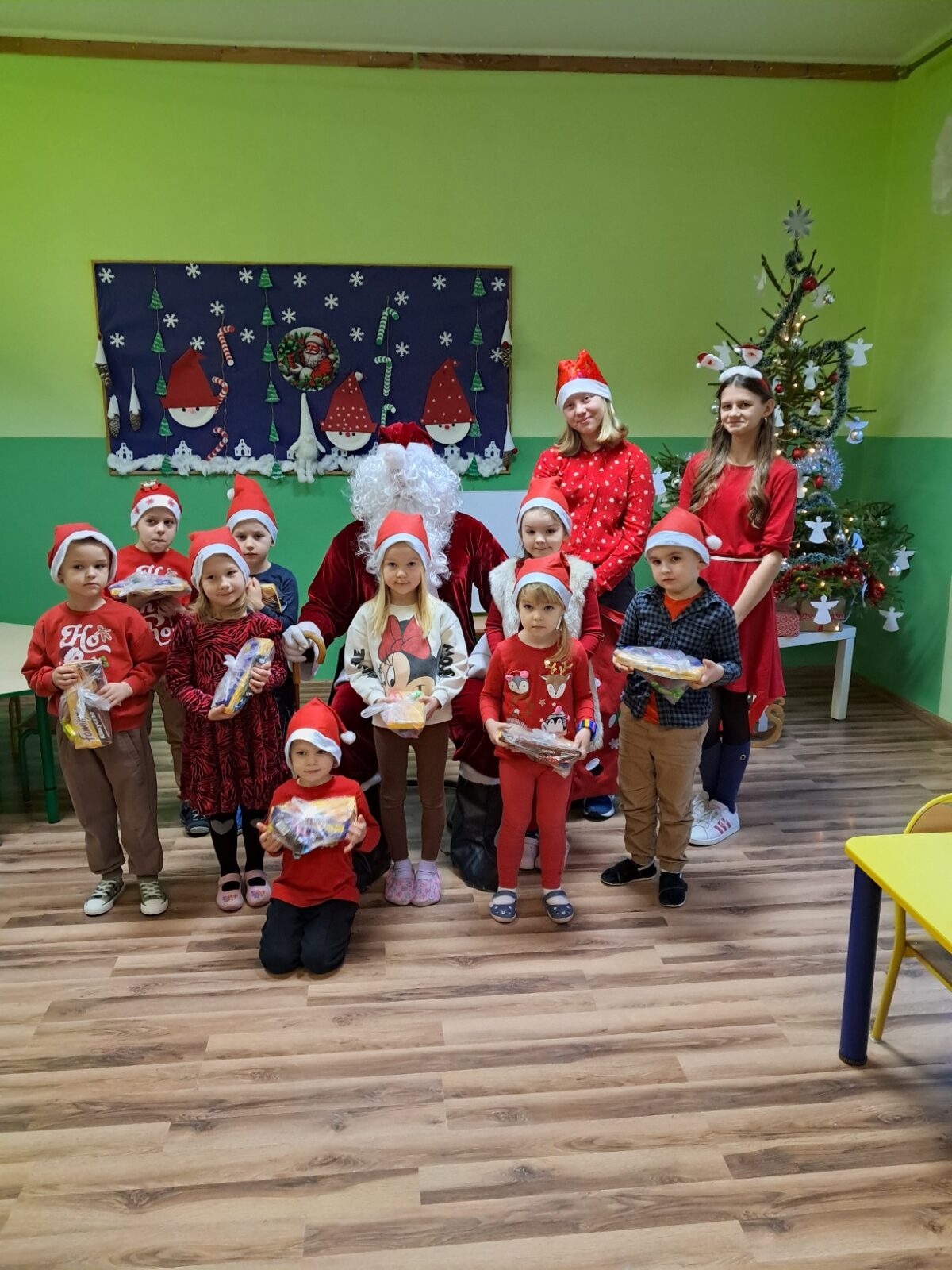8 grudnia nasze przedszkolaki wyglądały wyjątkowo – po prostu czerwono i ,,mikołajkowo”. Od rana panował gwar i radość. Zarówno dzieci z przedszkola w Dziemianach, jak i z oddziału w Trzebuniu z wielką niecierpliwością oczekiwały na przyjście niezwykłego gościa. Święty Mikołaj nie kazał długo na siebie czekać i już po śniadaniu zawitał do przedszkola. Podczas spotkania przedszkolaki śpiewały piosenki, tańczyły, recytowały wierszyki, rozmawiały z Mikołajem, opowiadały o zabawach w przedszkolu, wręczyły imieninowe życzenia, częstowały pierniczkami i oczywiście chwaliły się, że są bardzo grzeczne. Święty Mikołaj wręczył każdemu dziecku wspaniały prezent. Śmiechu i radości było wiele. Na twarzach widać było wielkie wzruszenie i zadowolenie. Mikołaj na zakończenie spotkania obiecał dzieciom, że odwiedzi je w przyszłym roku.