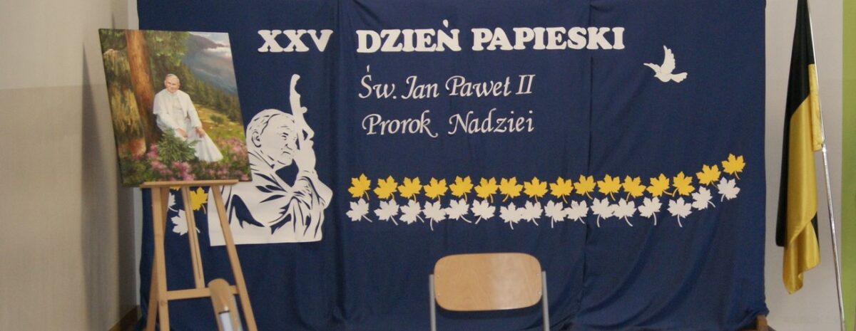 Dnia 16 października dokładnie w 47. rocznicę wyboru św. Jana Pawła II na Stolicę Piotrową obchodziliśmy w naszej szkole XXV Dzień Papieski. Tegoroczne hasło tego wydarzenia brzmiało: “Św. Jan Paweł II – prorok nadziei.”