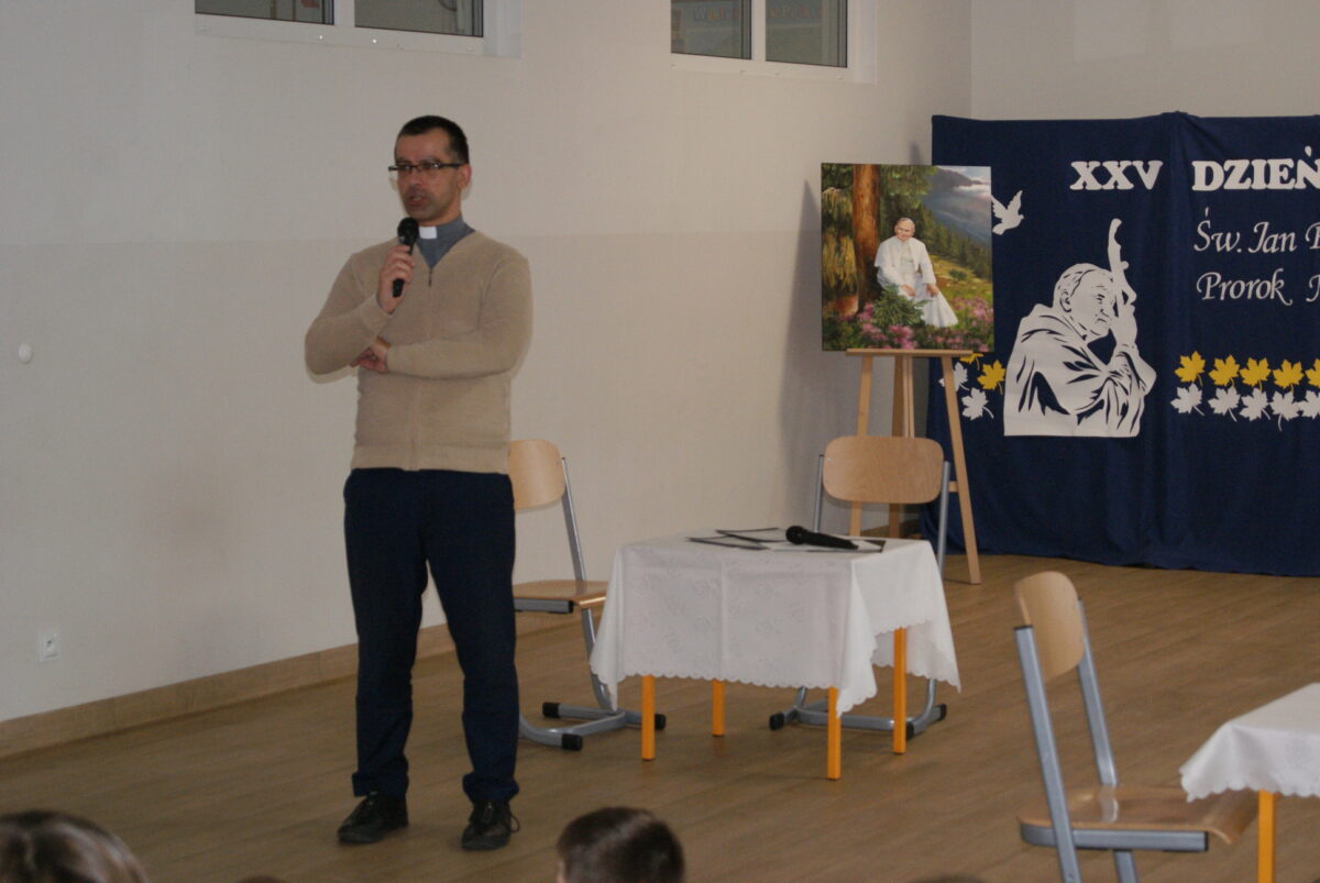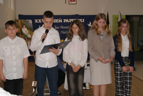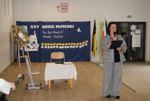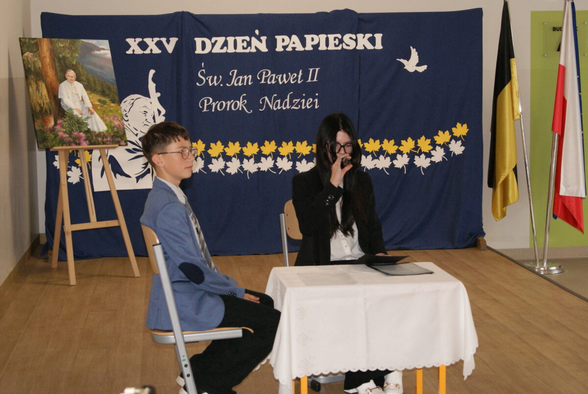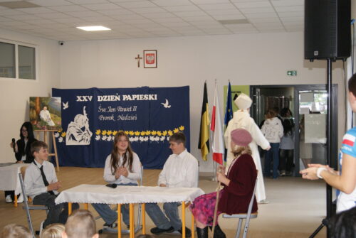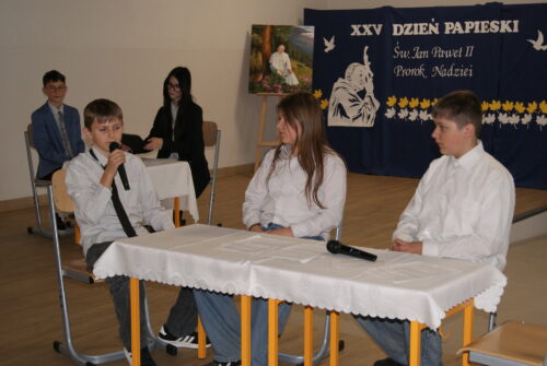 Dnia 16 października dokładnie w 47. rocznicę wyboru św. Jana Pawła II na Stolicę Piotrową obchodziliśmy w naszej szkole XXV Dzień Papieski. Tegoroczne hasło tego wydarzenia brzmiało: “Św. Jan Paweł II – prorok nadziei.”