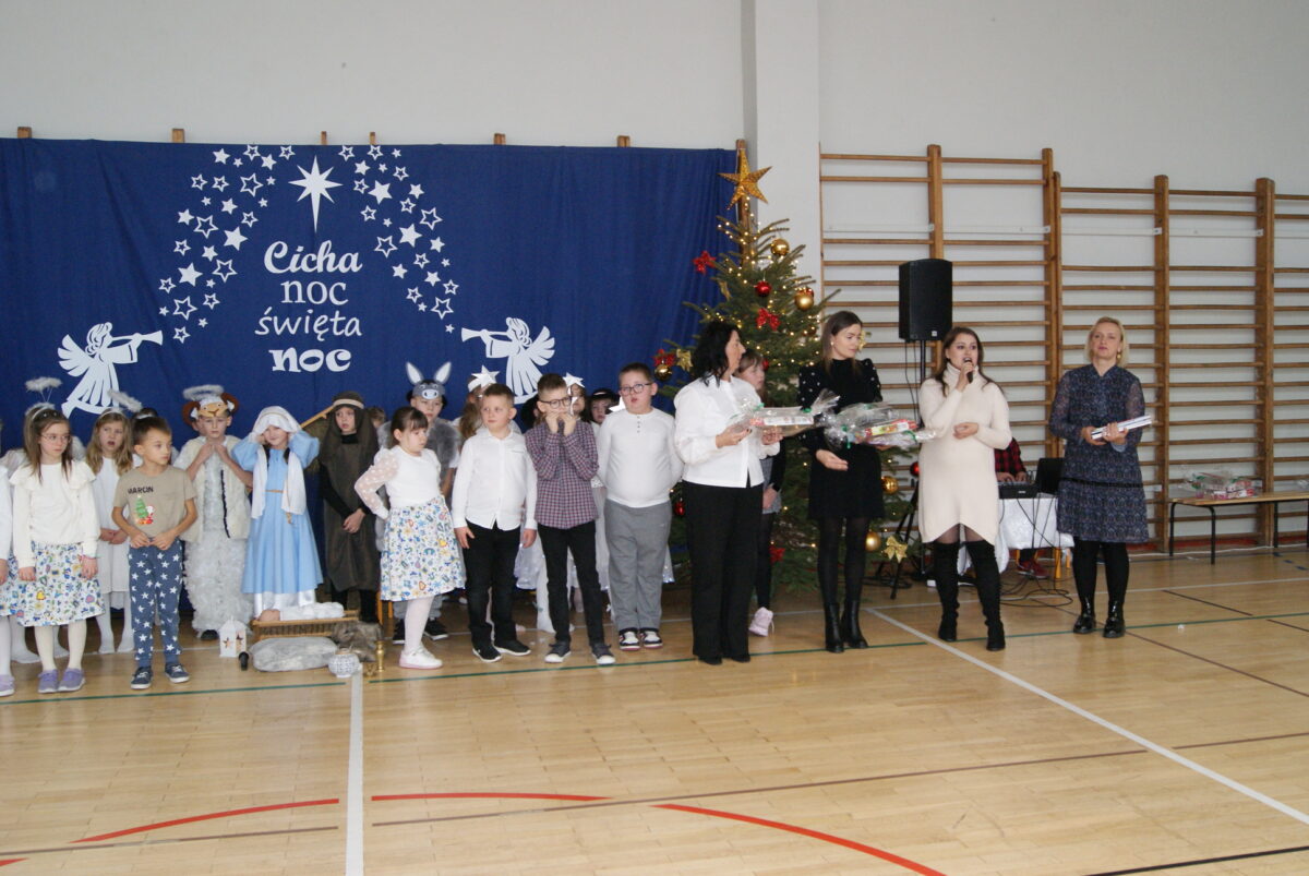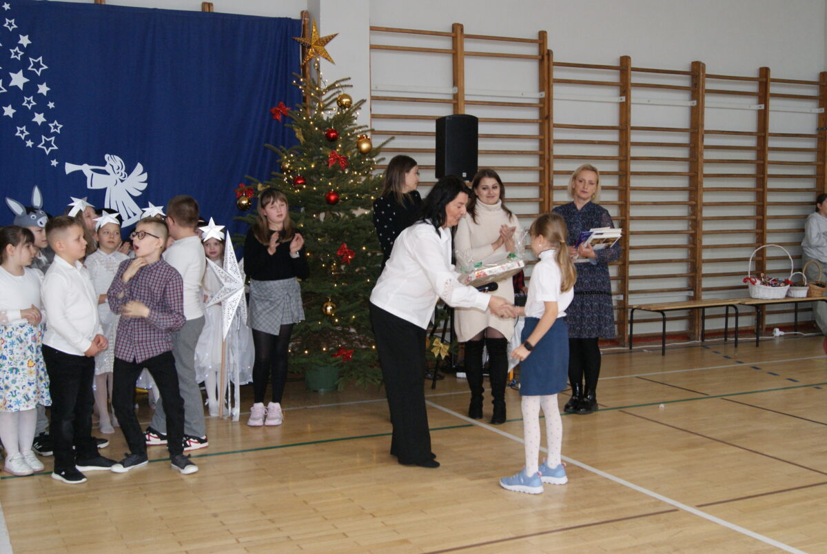Nagrody dla zwycięzców wręczyła dyrektor szkoły Pani Beata Grau podczas jasełek, co dodatkowo wprowadziło świąteczny nastrój i ucieszyło laureatów.