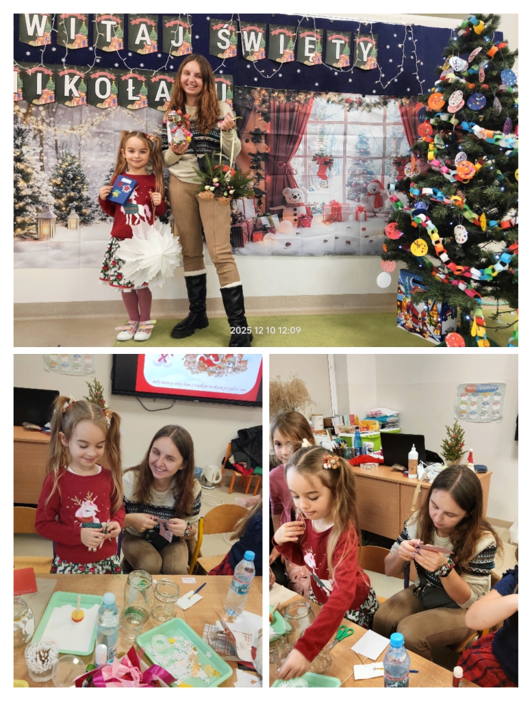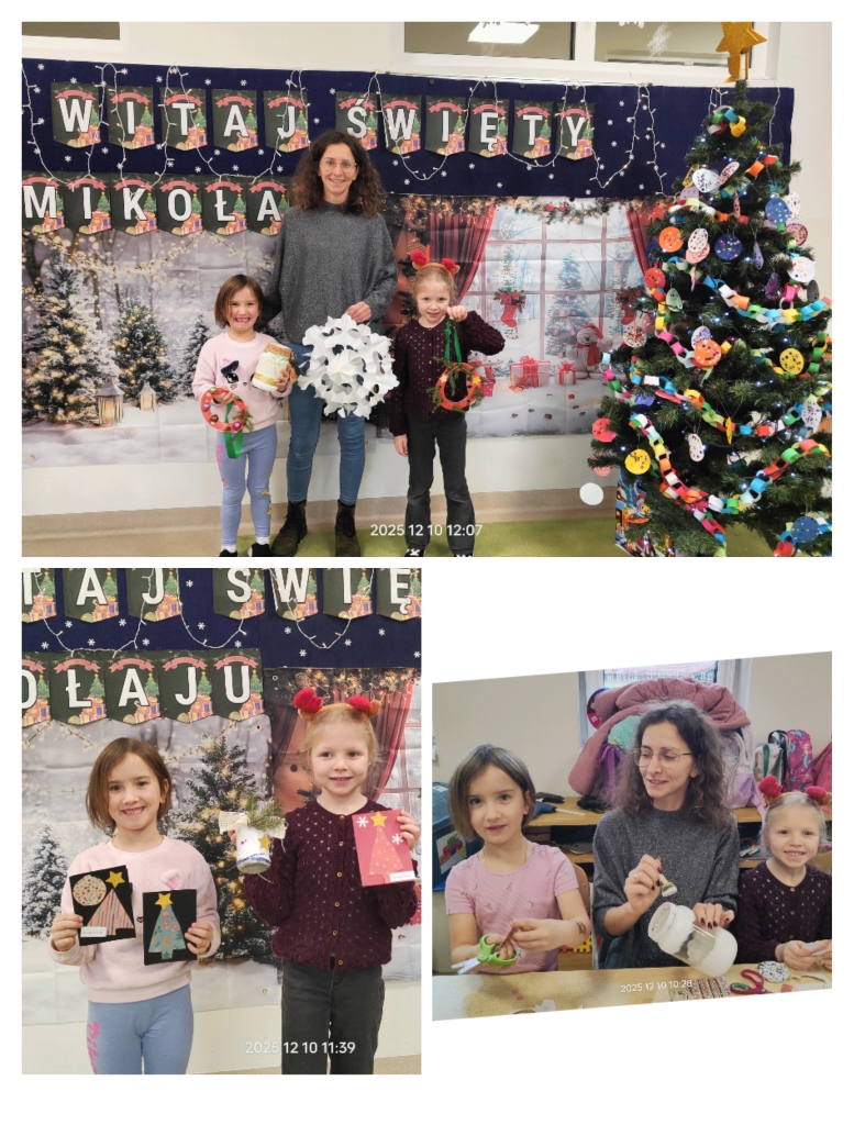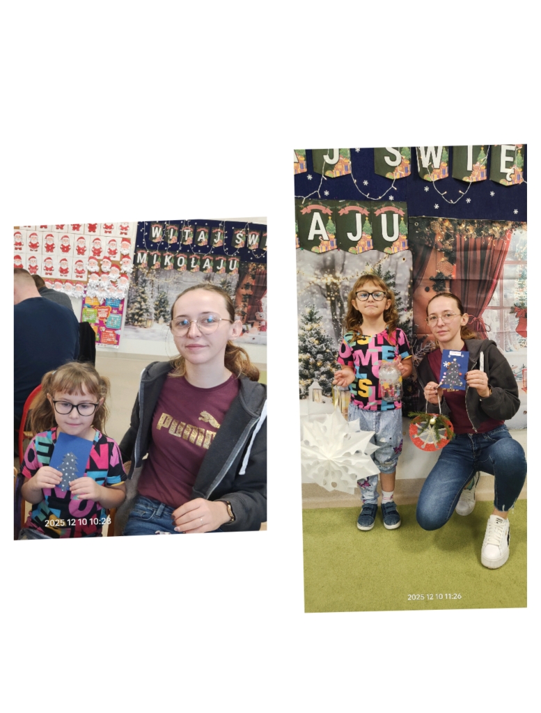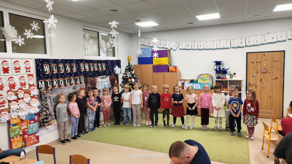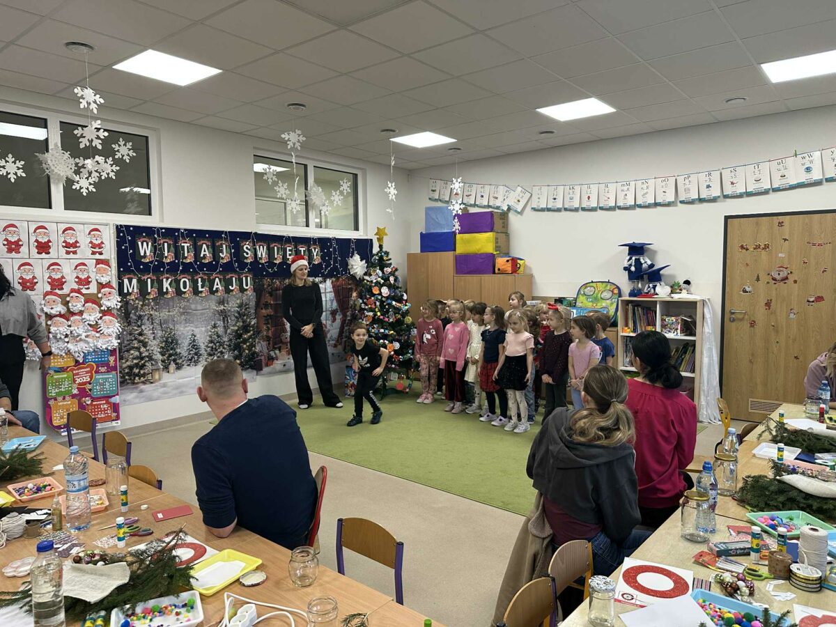 W środę 10 grudnia odbyło się wyjątkowe, pełne ciepła i radości spotkanie świąteczne, w którym udział wzięły dzieci wraz z rodzicami. Uroczystość rozpoczęła się krótkim występem artystycznym – dzieci zaprezentowały przygotowane piosenki oraz układ taneczny, a następnie wspólnie z rodzicami zaśpiewały kolędę, wprowadzając wszystkich w prawdziwie świąteczny nastrój.