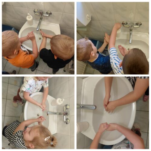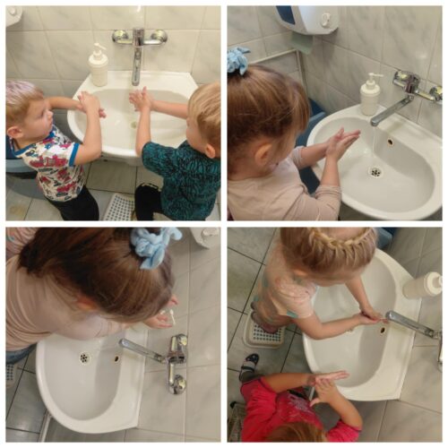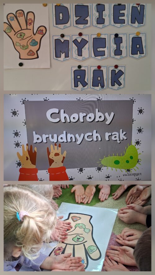 15 października obchodzony jest Światowy Dzień Mycia Rąk. Celem tego dnia jest uświadomienie dzieciom jak ważne znaczenie ma w ich życiu codzienne mycie rąk. We wszystkich grupach przedszkolnych odbyły się rozmowy na temat zarazków, bakterii i wirusów, które dostają się do organizmu poprzez brudne ręce. Dzieci dowiedziały się, jakie znaczenie dla zdrowia ma częste i dokładne mycie rąk. Omówiono z dziećmi etapy mycia rąk oraz zastosowano je w praktyce. Dzieci dowiedziały się rownież w jakich sytuacjach jest wskazane a nawet konieczne umycie dokładne rąk. Światowy Dzień Mycia Rąk dostarczył przedszkolakom wielu wrażeń oraz pokazał, że pewne umiejętności i nawyki należy kształtować już od najmłodszych lat.