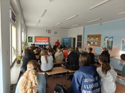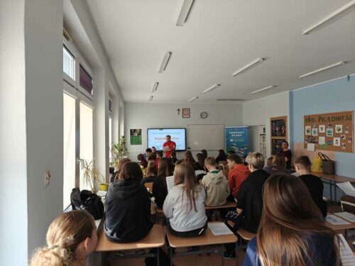 W środę, 5 października, w naszej szkole odbyło się szkolenie dla członków Szkolnego Wolontariatu, prowadzone przez przedstawicieli Korpusu Solidarności – pana Jarosława Orlikowskiego i pana Patryka Hamerskiego.