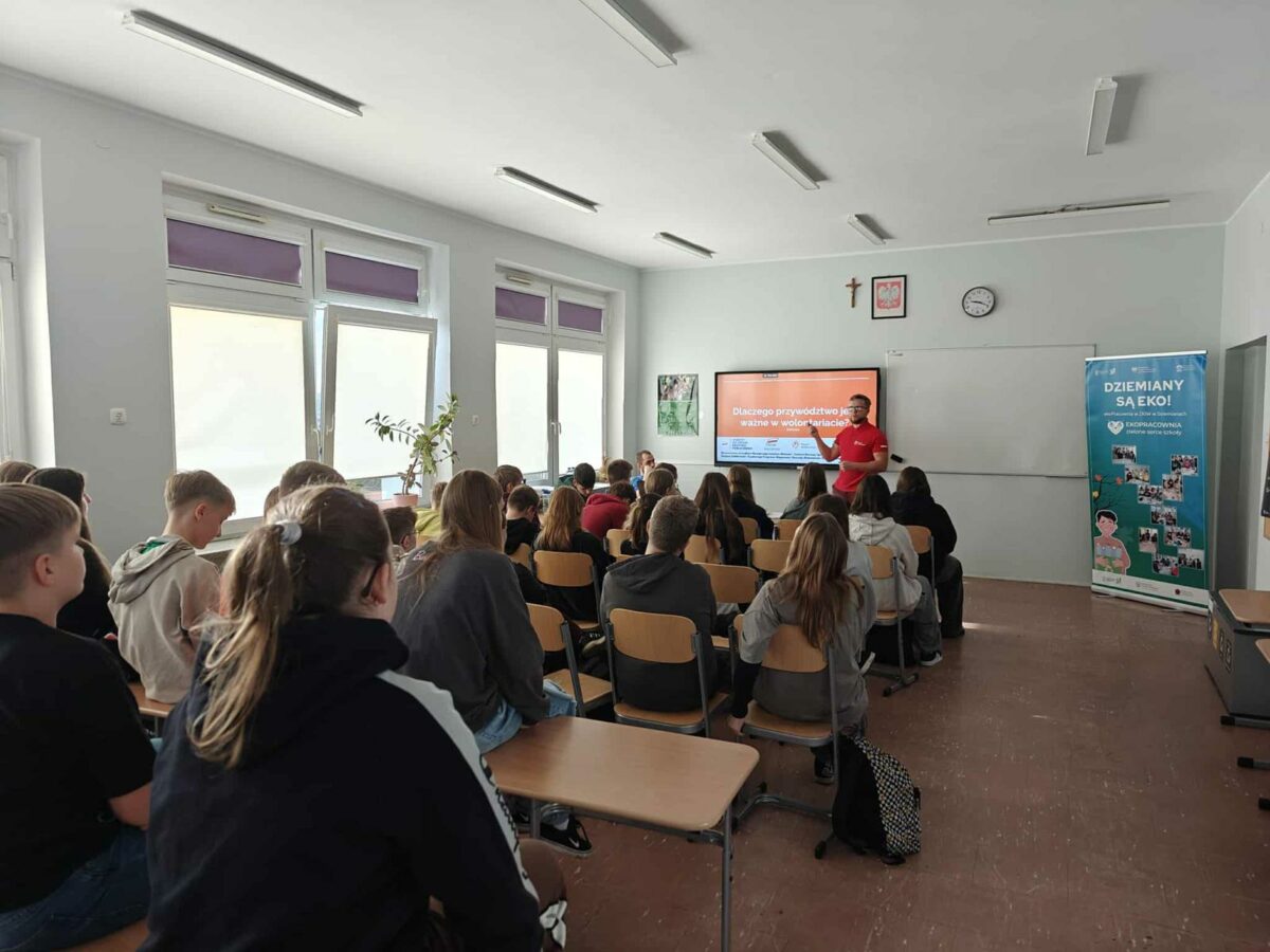 W środę, 5 października, w naszej szkole odbyło się szkolenie dla członków Szkolnego Wolontariatu, prowadzone przez przedstawicieli Korpusu Solidarności – pana Jarosława Orlikowskiego i pana Patryka Hamerskiego.