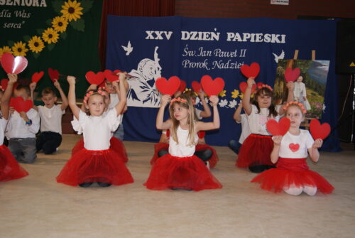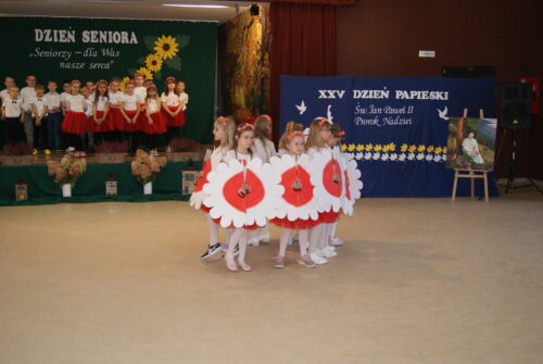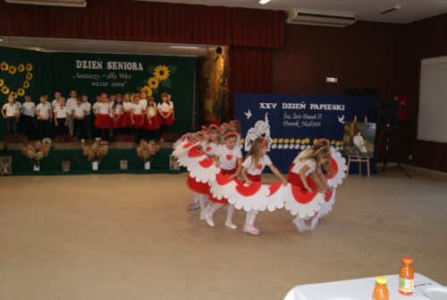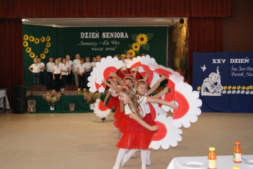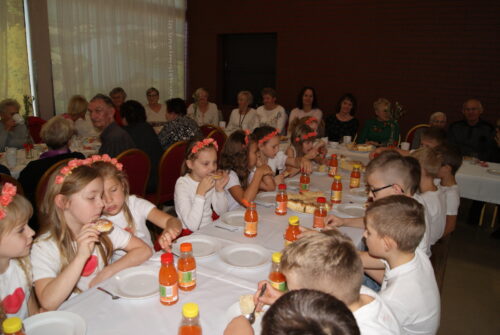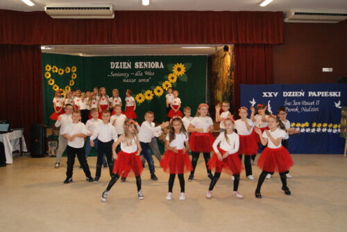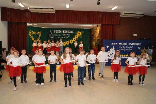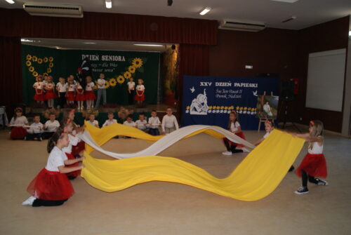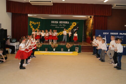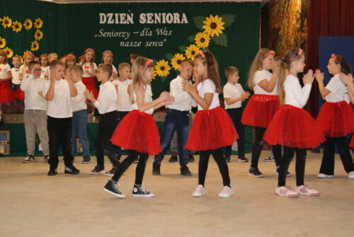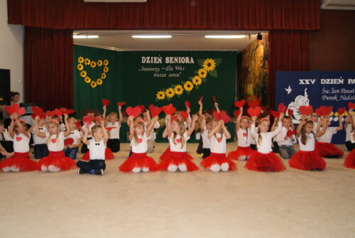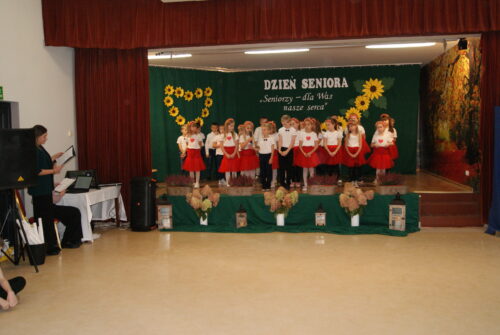 W dalszej części spotkania dzieci zaprezentowały przygotowane wiersze, piosenki i tańce, wypełniając salę radością, wzruszeniem i szczerymi emocjami. Występy najmłodszych stały się pięknym wyrazem wdzięczności i szacunku wobec starszego pokolenia.