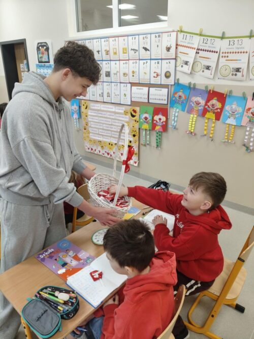Tego dnia każdy uczeń otrzymał również drobną słodkość przygotowaną przez Samorząd Uczniowski. Był to symboliczny gest, który miał przypomnieć, że Walentynki to nie tylko święto zakochanych, ale przede wszystkim dzień życzliwości, przyjaźni i dobrych relacji.