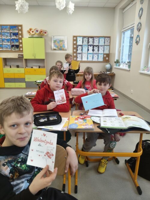Już kilka dni wcześniej na szkolnym korytarzu pojawiła się specjalna skrzynka na kartki walentynkowe. Uczniowie mogli wrzucać do niej życzenia, miłe słowa i wyrazy sympatii dla koleżanek, kolegów oraz nauczycieli.