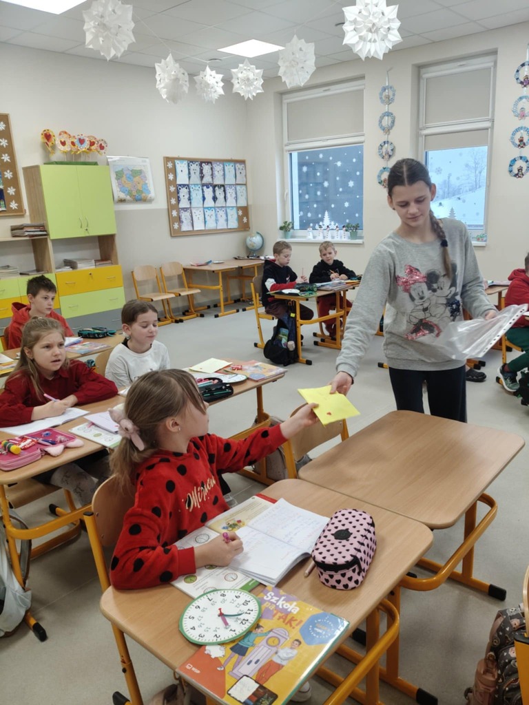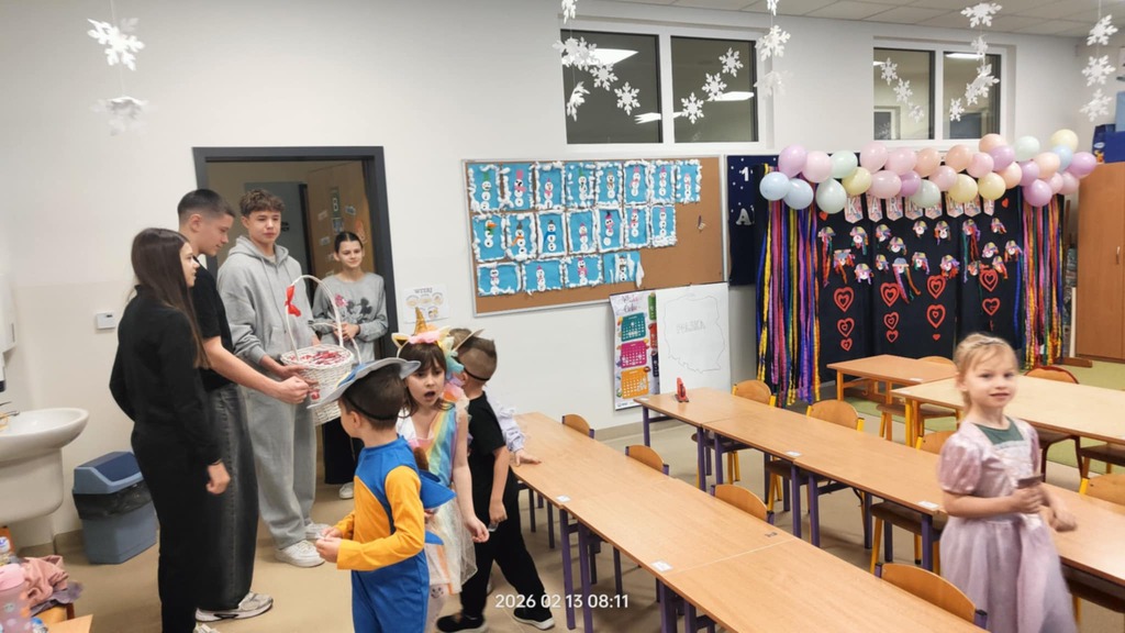 Już kilka dni wcześniej na szkolnym korytarzu pojawiła się specjalna skrzynka na kartki walentynkowe. Uczniowie mogli wrzucać do niej życzenia, miłe słowa i wyrazy sympatii dla koleżanek, kolegów oraz nauczycieli.
