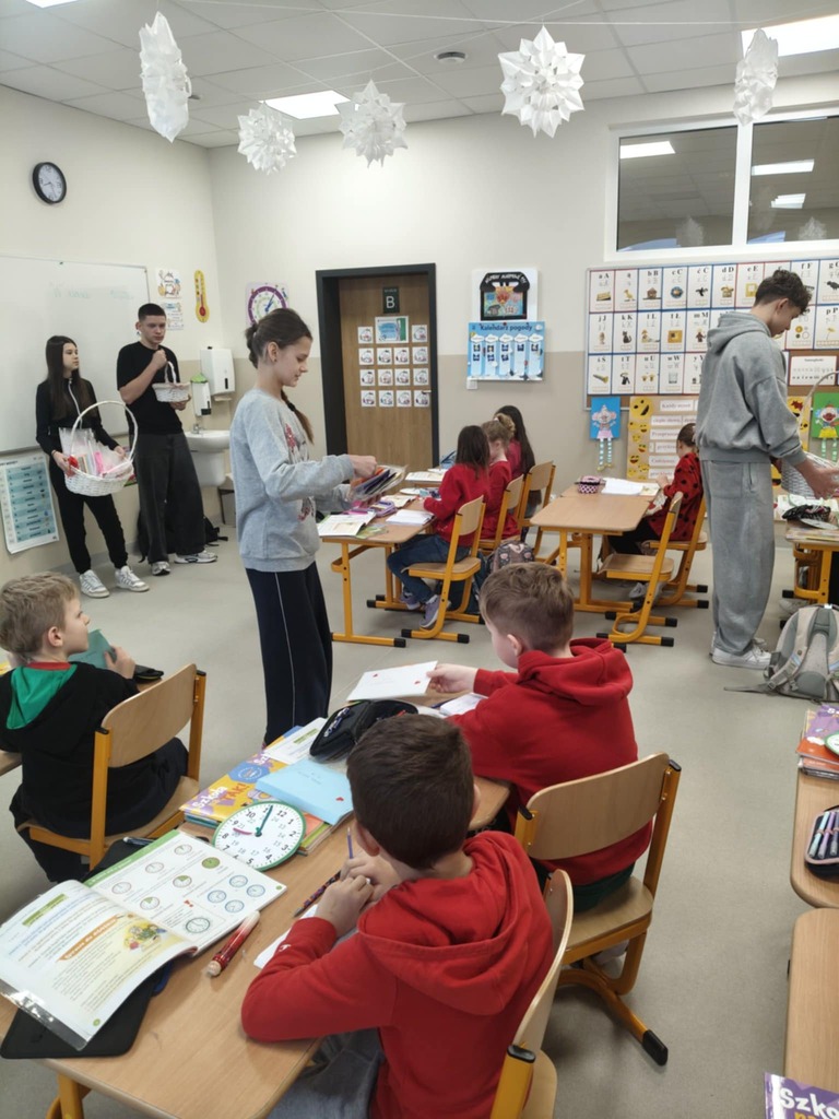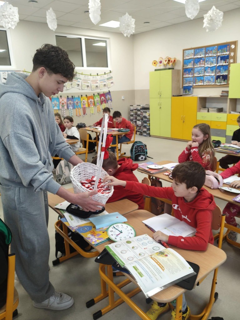 Tego dnia każdy uczeń otrzymał również drobną słodkość przygotowaną przez Samorząd Uczniowski. Był to symboliczny gest, który miał przypomnieć, że Walentynki to nie tylko święto zakochanych, ale przede wszystkim dzień życzliwości, przyjaźni i dobrych relacji.