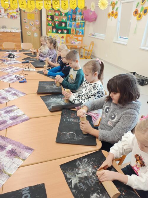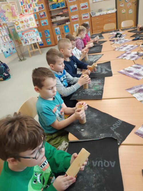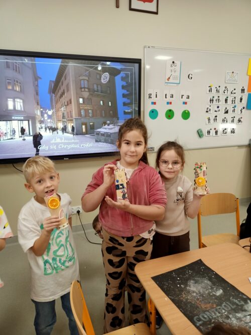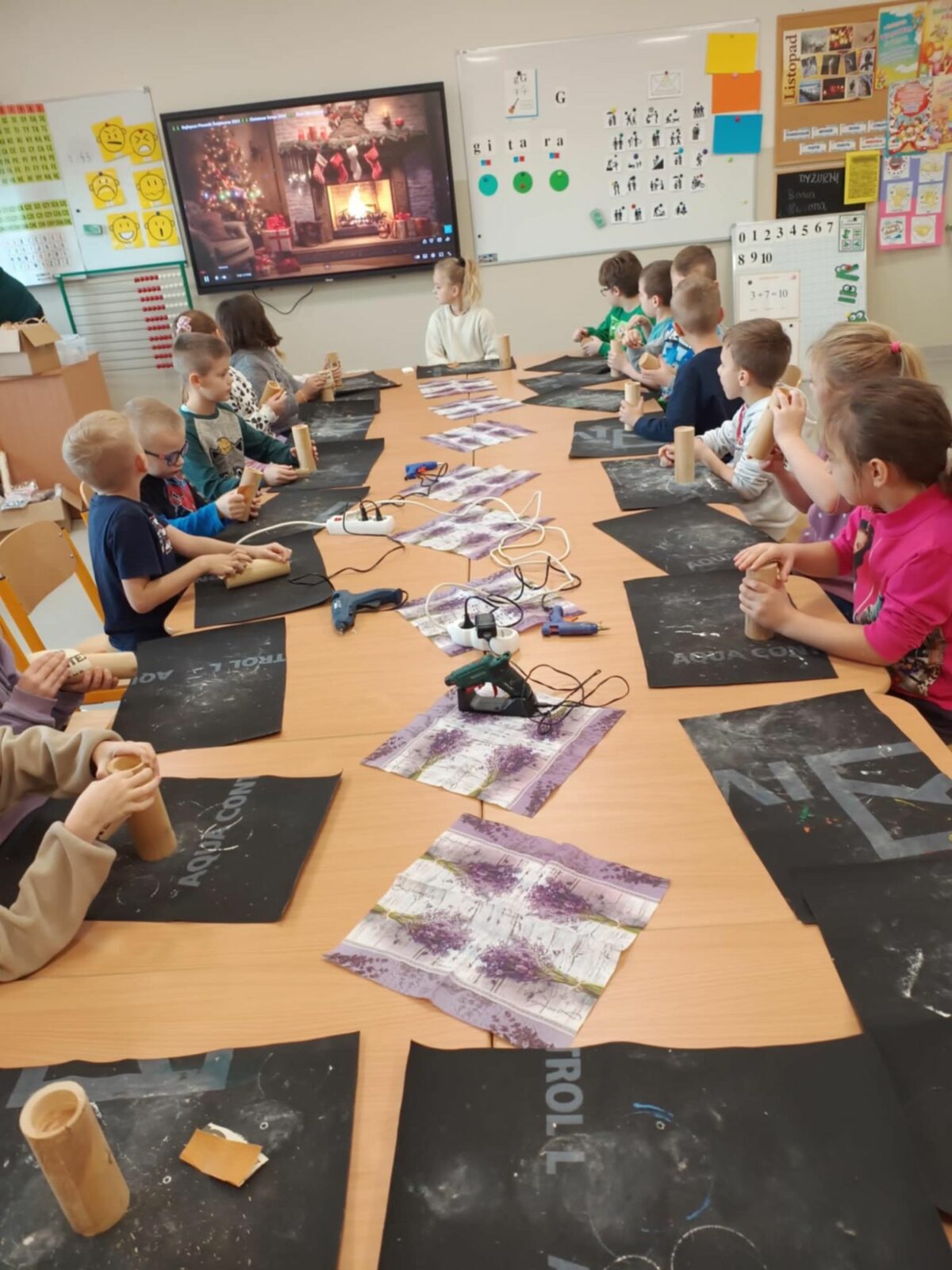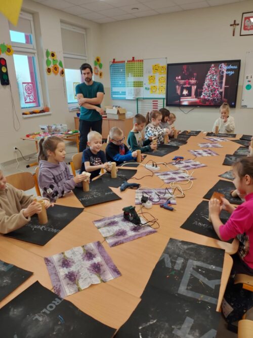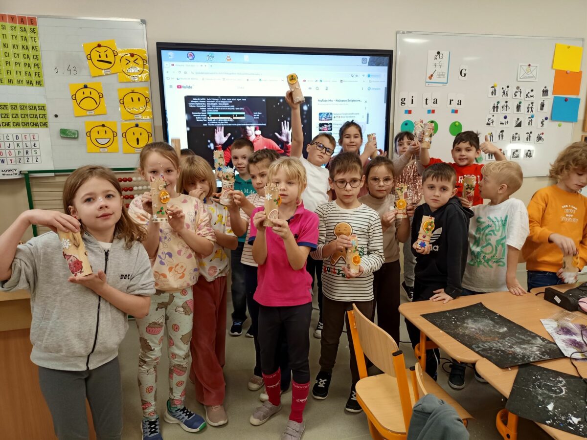 27 listopada w klasach pierwszych odbyły się warsztaty bożonarodzeniowe, których celem było wprowadzenie uczniów w atmosferę zbliżających się świąt oraz wykonanie własnoręcznego upominku dla rodziców. Zajęcia rozpoczęły się krótkim wprowadzeniem dotyczącym świąt bożonarodzeniowych oraz symboliki światła, które w tym okresie odgrywa szczególną rolę. Dzięki świątecznej muzyce oraz rozmowie o zwyczajach uczniowie szybko poczuli magię nadchodzących świąt.